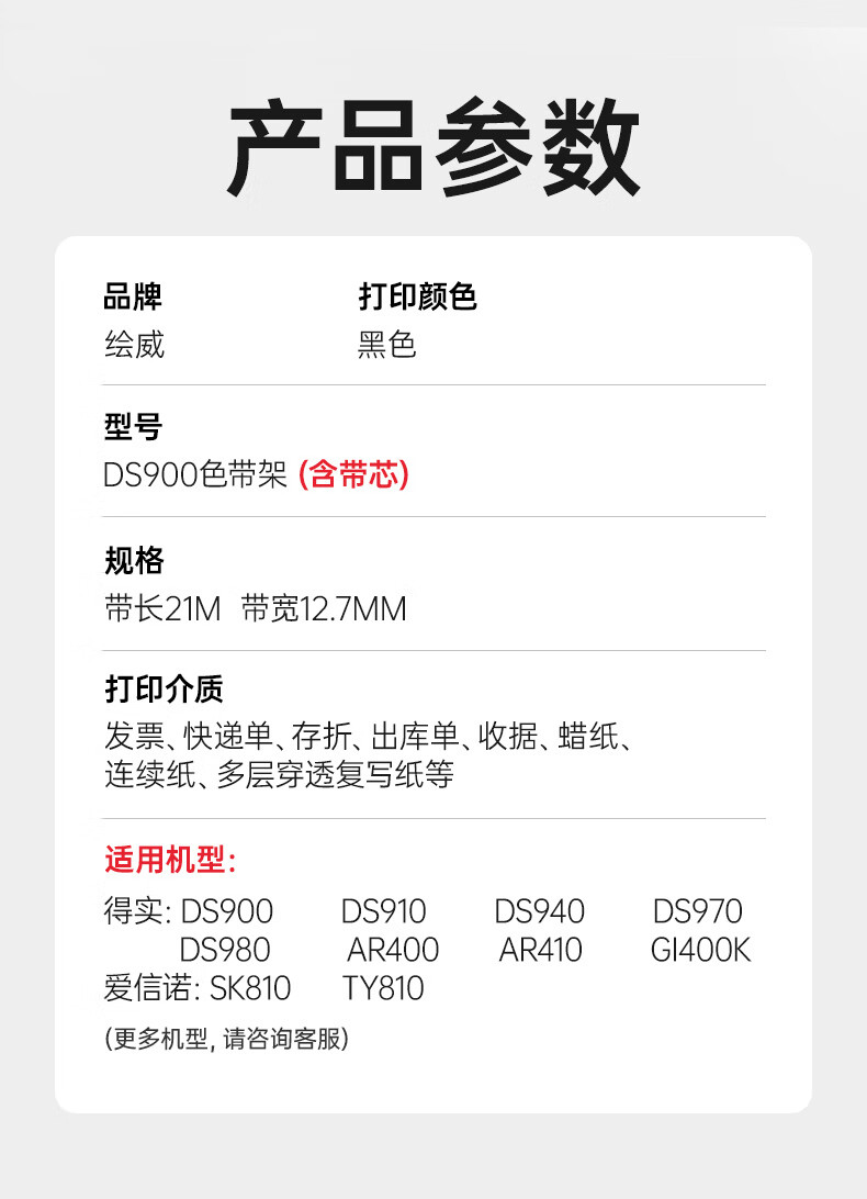 绘威80D-2色带DS900色带架适用得实DS400 DS910 DS940 DS970 DS980 航天爱信诺SK810 TY810针式打印机