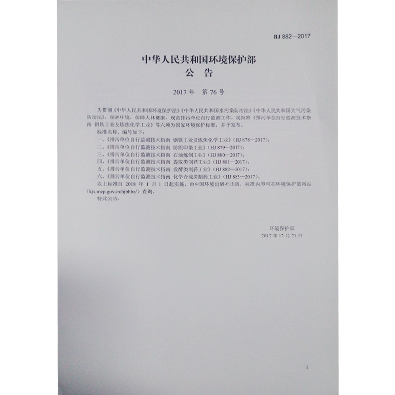 HJ882-2017 排污单位自行监测技术指南 发酵类制药工业