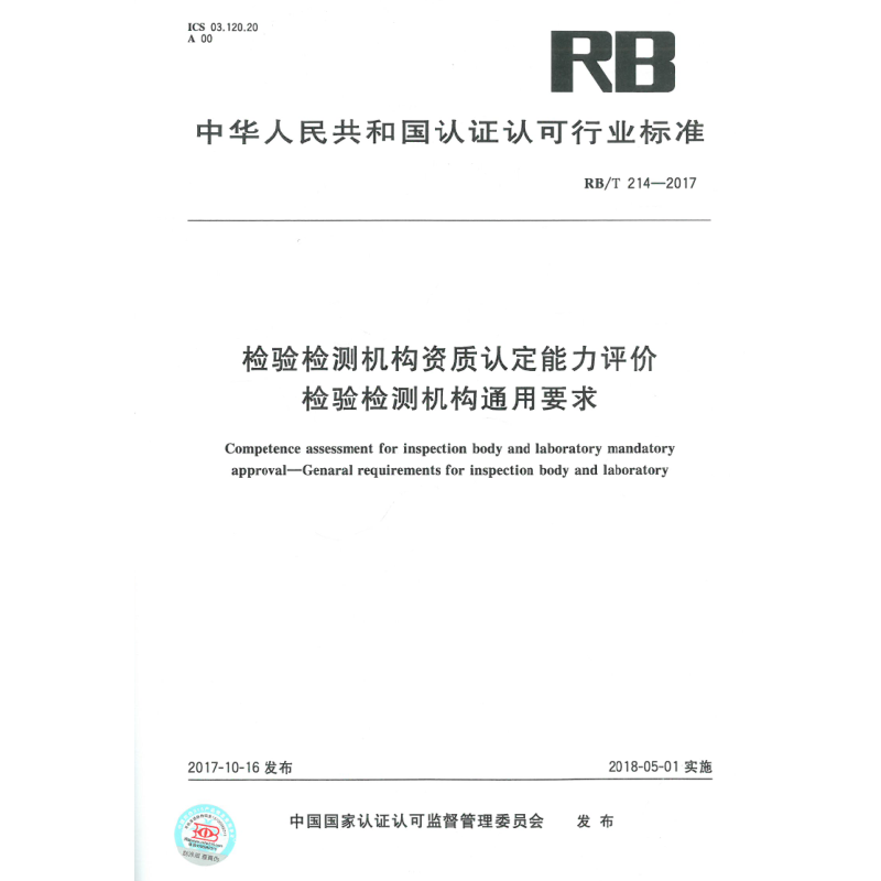 正版现货 RB/T 214-2017 检验检测机构资质认定能力评价 检验检测机构通用要求 可提供机打发票