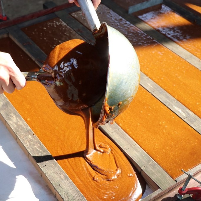 【传统工艺】傣家小锅古法熬制,熬制时不削甘蔗皮;熬制时不加灰不点油,保证红糖纯正香甜浓郁。