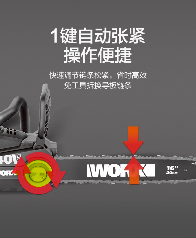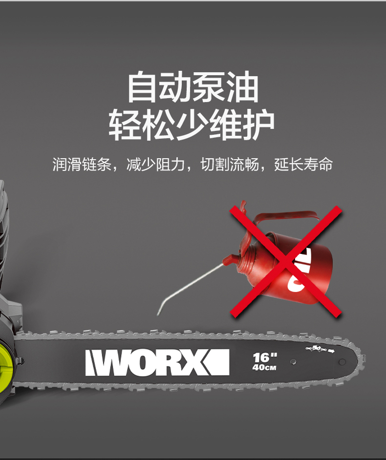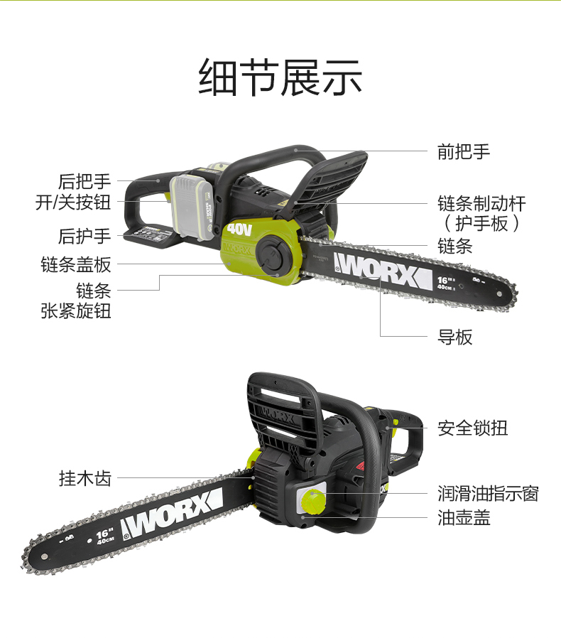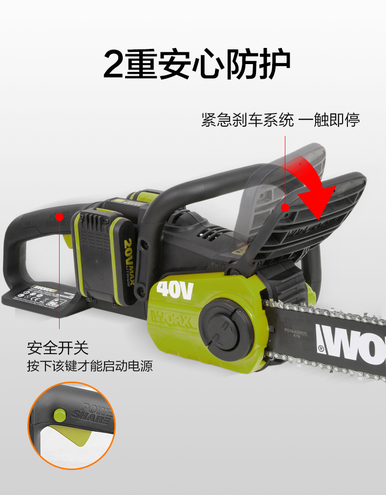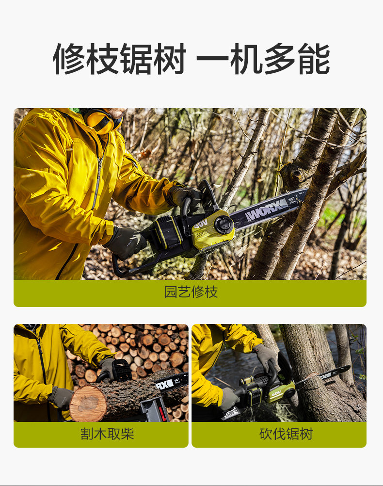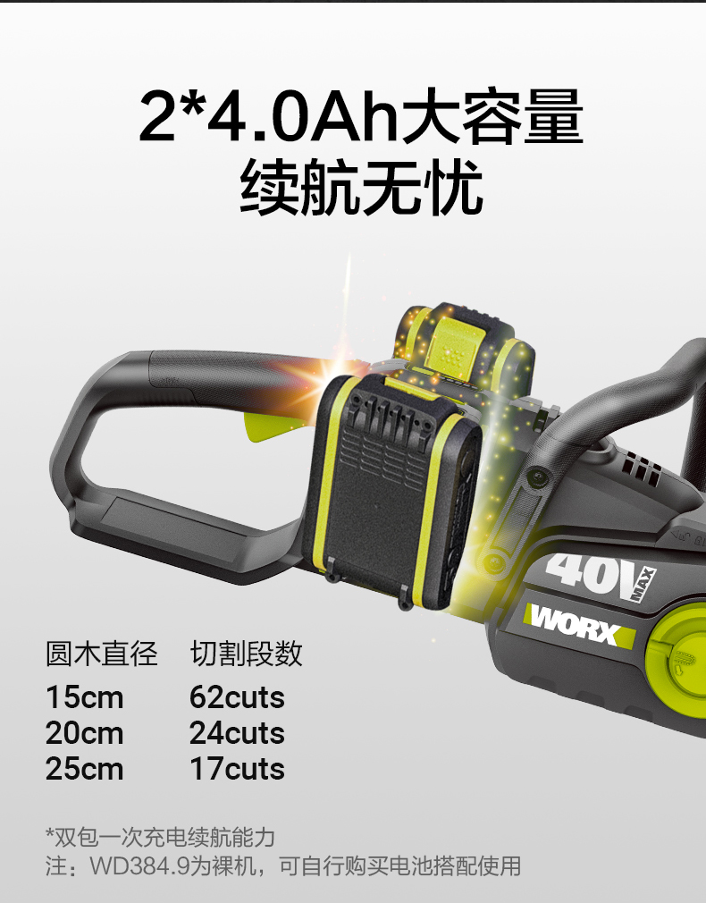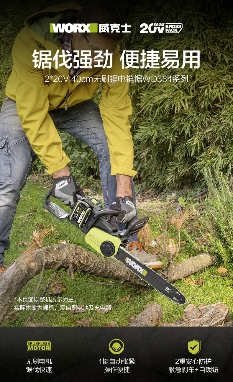 威克士锂电电链锯WD384充电式伐木锯锯柴40V电锯家用小型手持