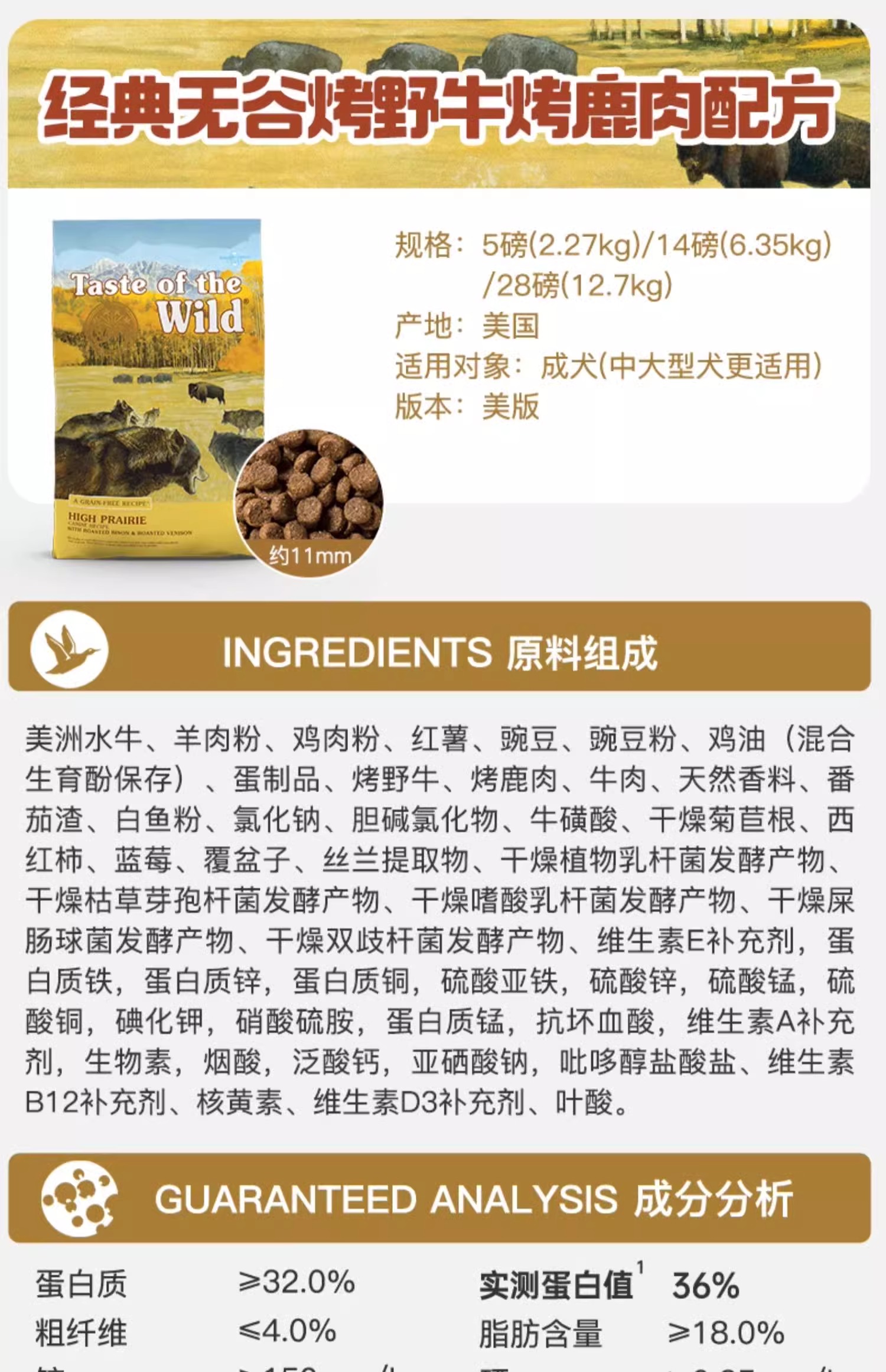 【保税仓】无谷烤鹿肉+烤野牛肉配方犬粮12.2kg(有效期至25年10月)