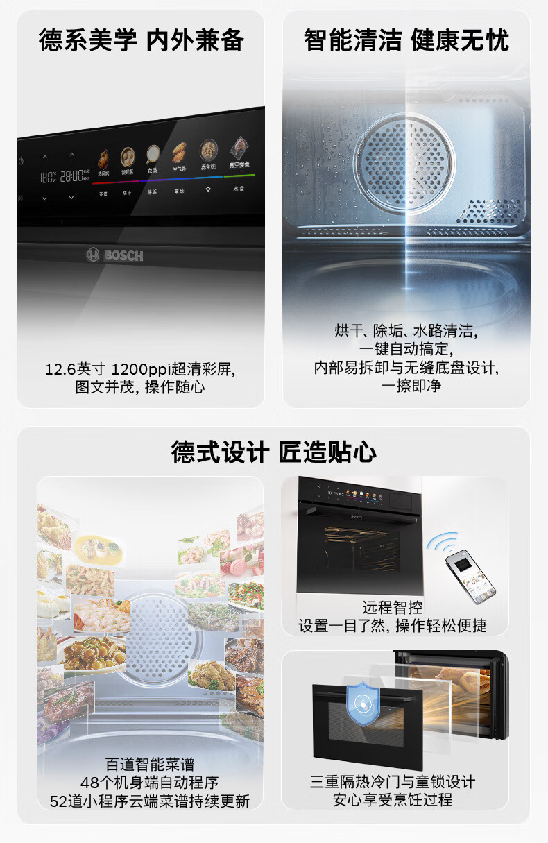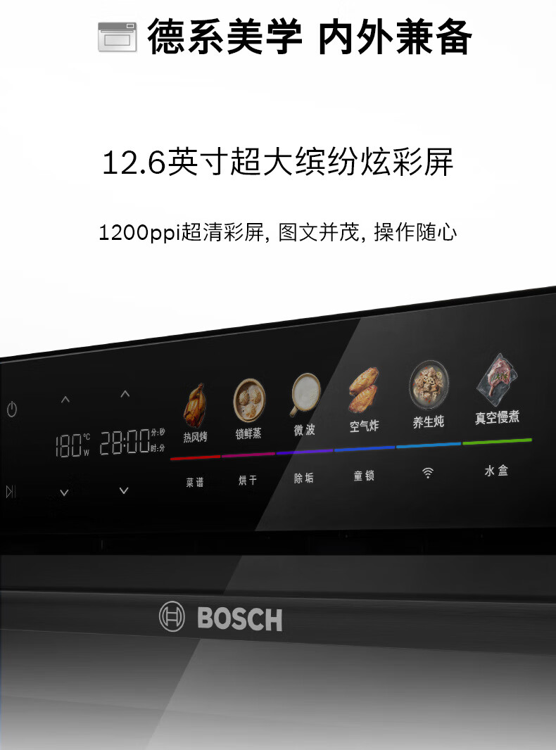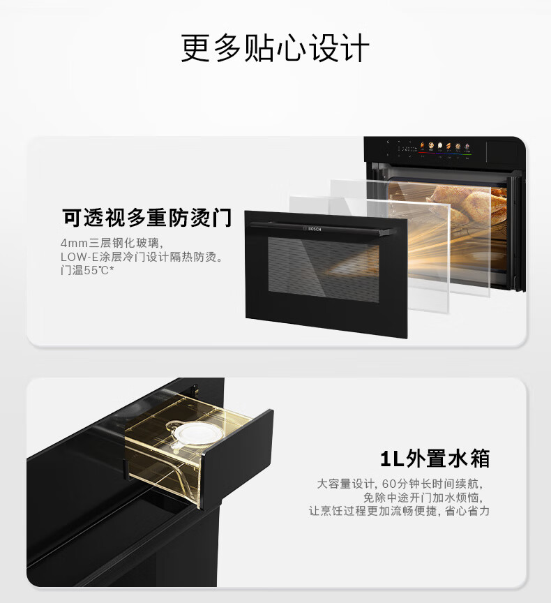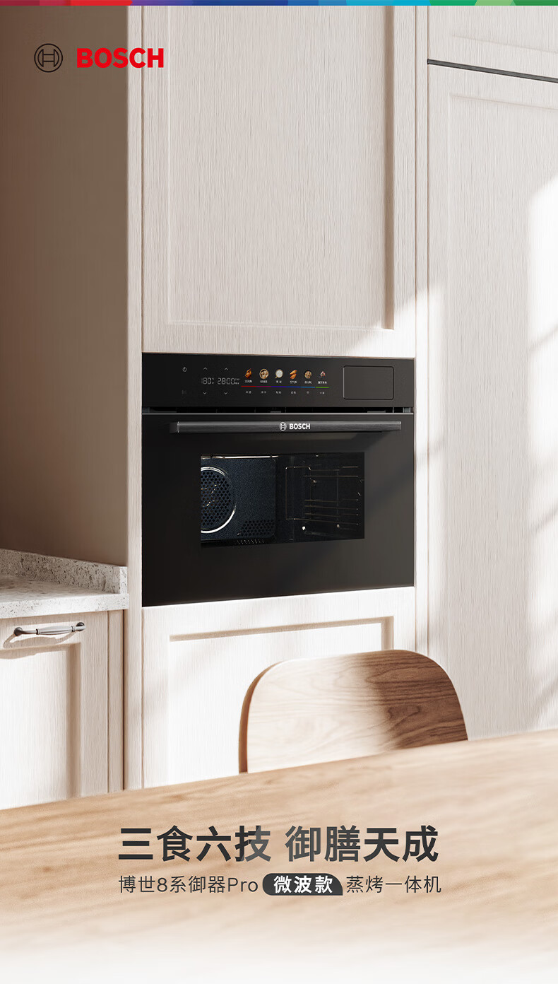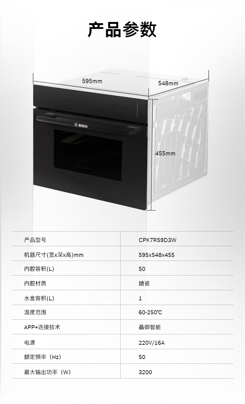 博世(BOSCH)【8系御器Pro】50L嵌入式微蒸烤箱一体机 微蒸烤炸炖煮六合一 五档变频微波 低氧锁鲜蒸 3D热风烤 CPK7R59D3W