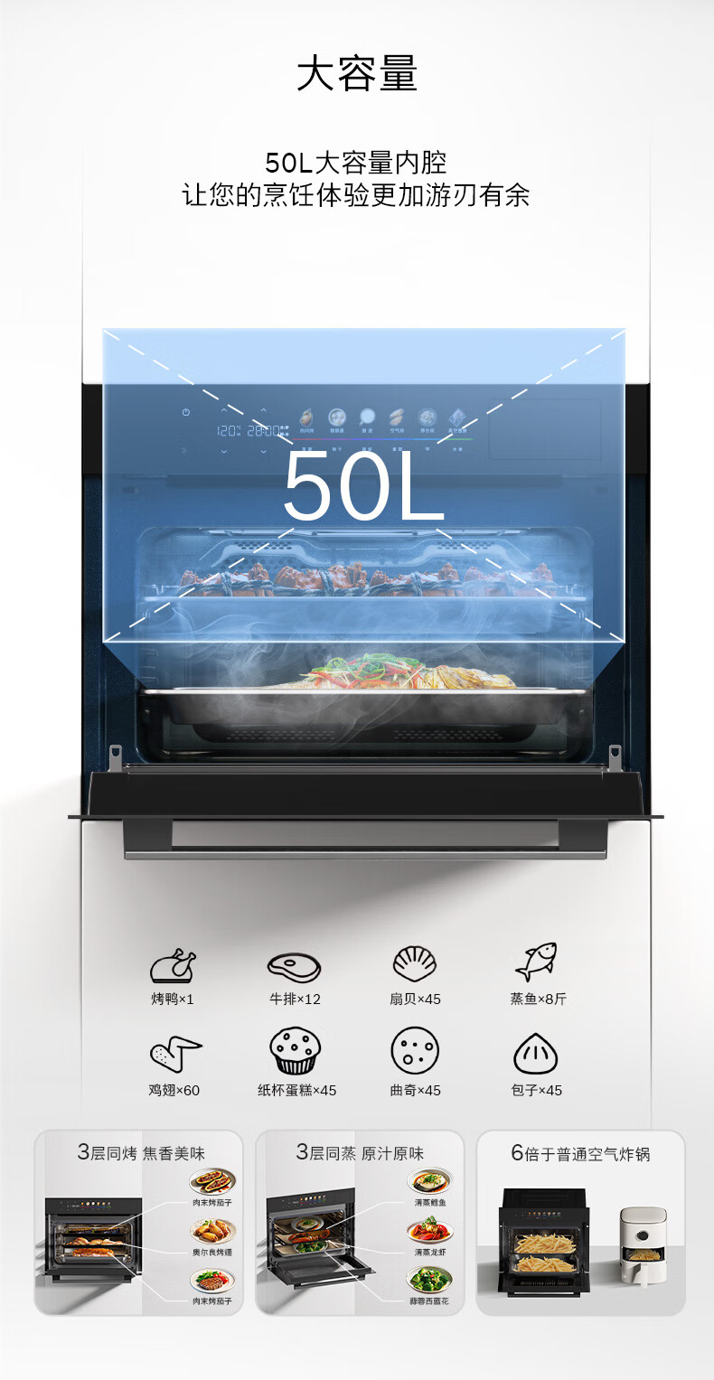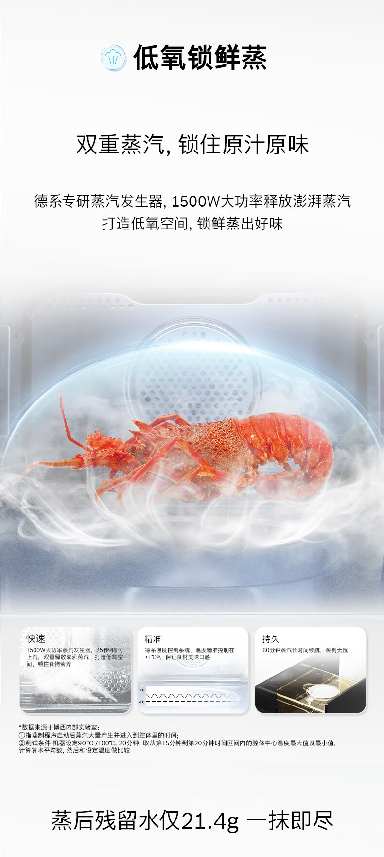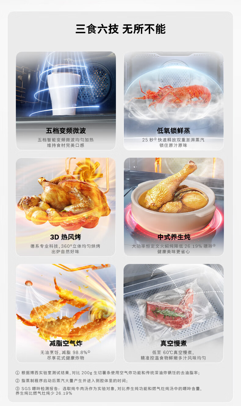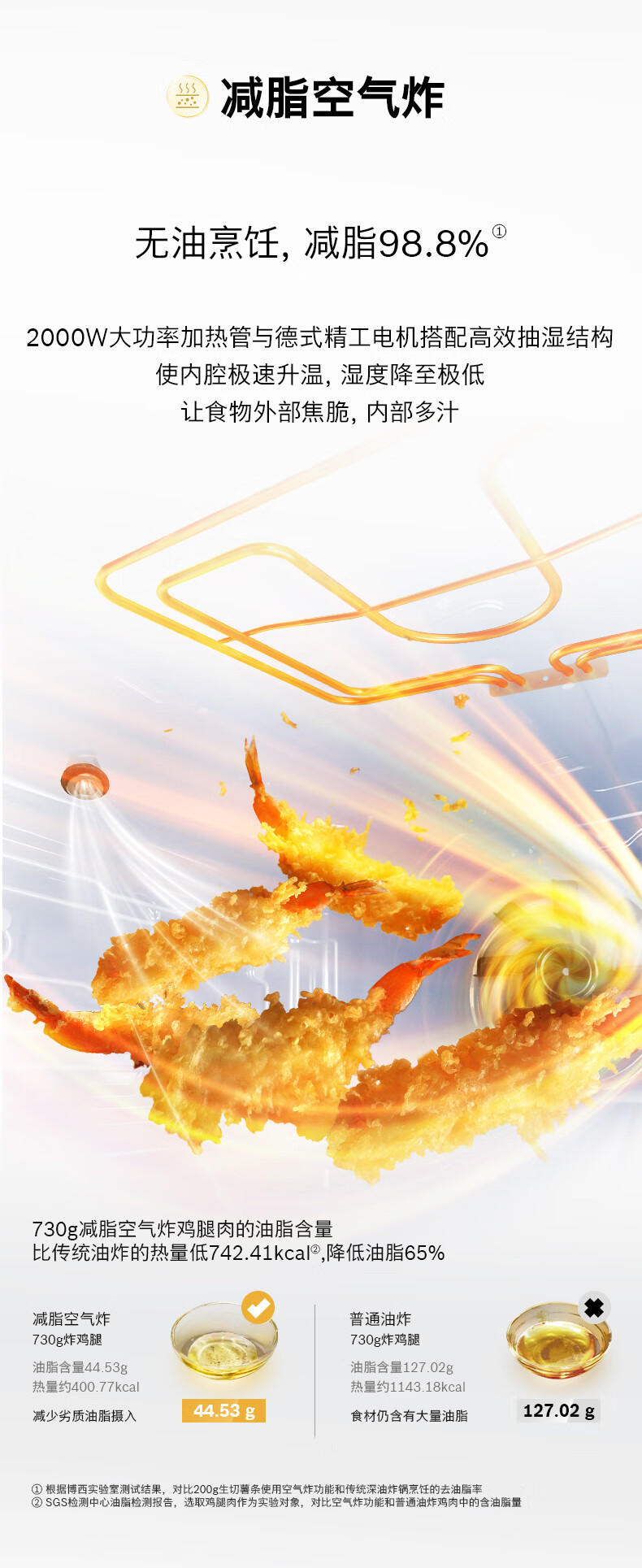 博世(BOSCH)【8系御器Pro】50L嵌入式微蒸烤箱一体机 微蒸烤炸炖煮六合一 五档变频微波 低氧锁鲜蒸 3D热风烤 CPK7R59D3W