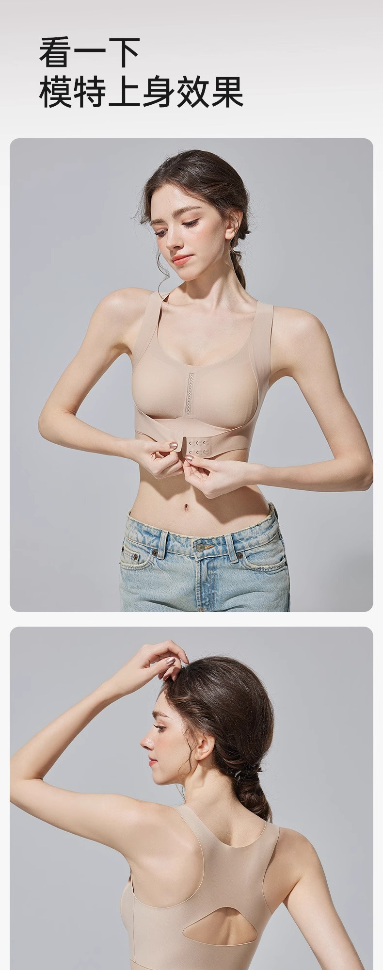 【买一送一】矫正提拉内衣女前扣矫姿开背塑形美背运动少女内衣初高中生青春发育期冰丝无痕无钢圈薄款跑步防震运动文胸