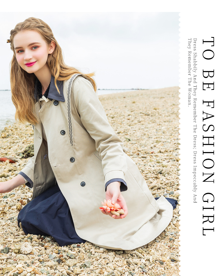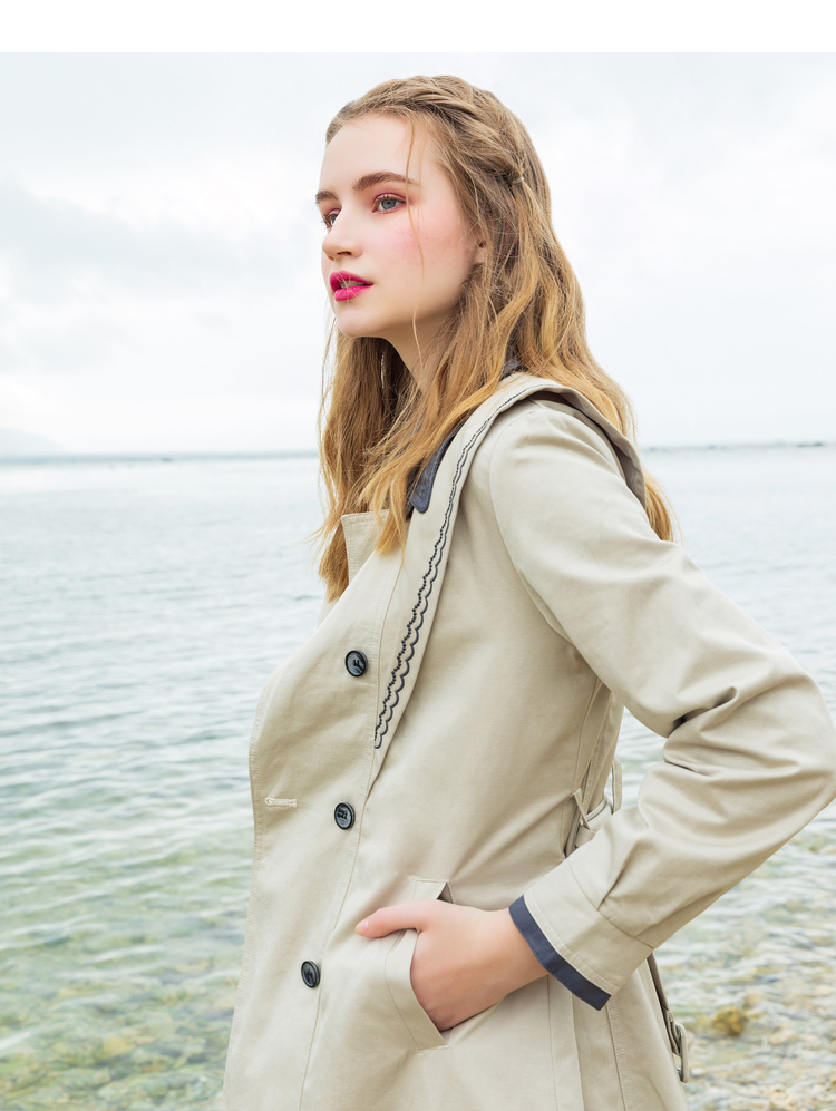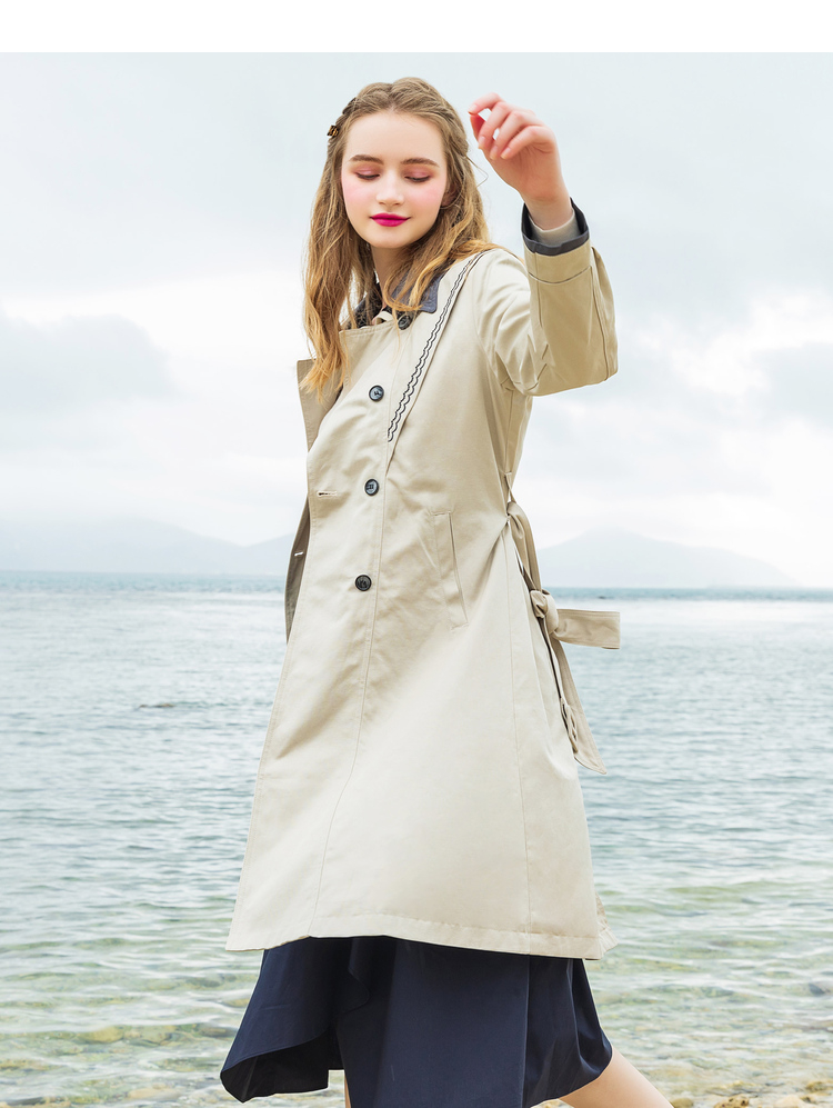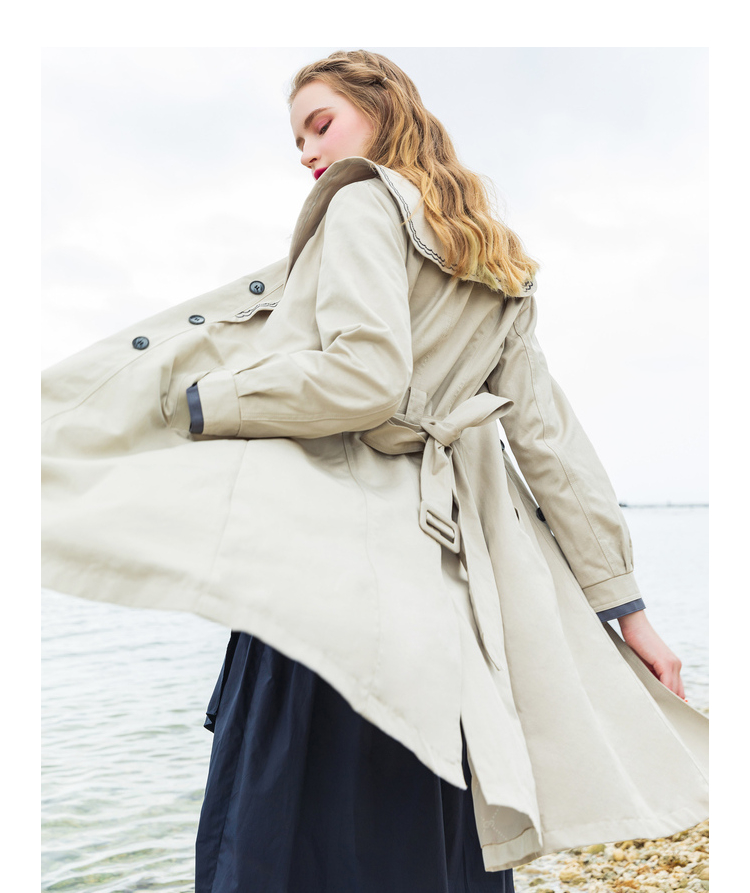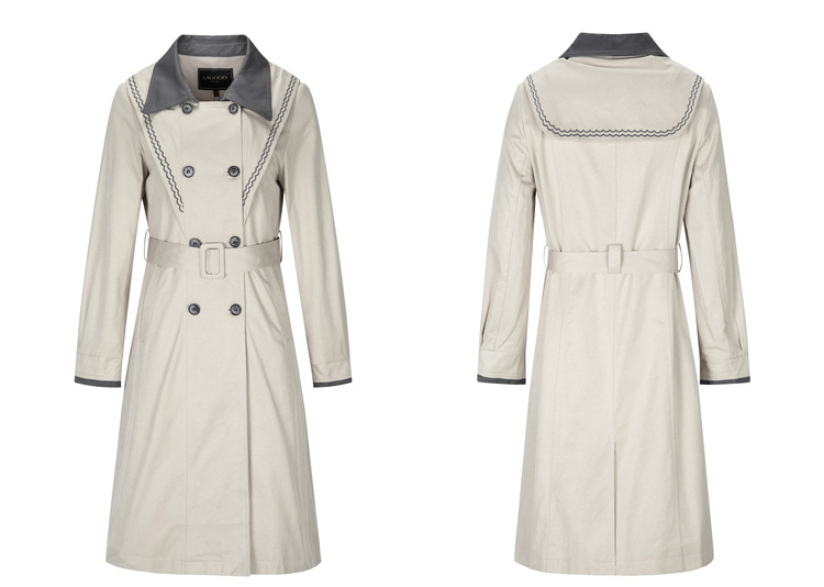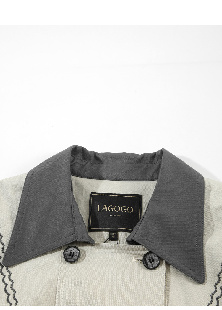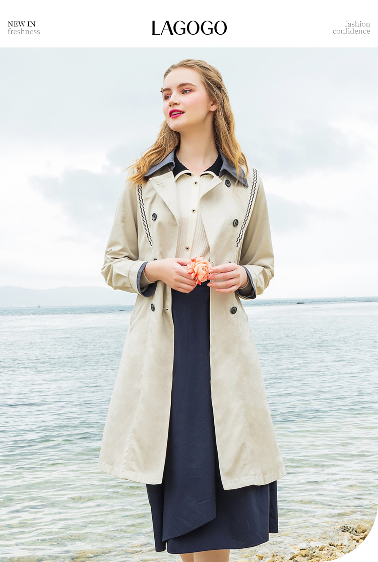 Lagogo拉谷谷2022春季新款翻领中长款双排扣灰驼色风衣女修身外套 LAFF232C43