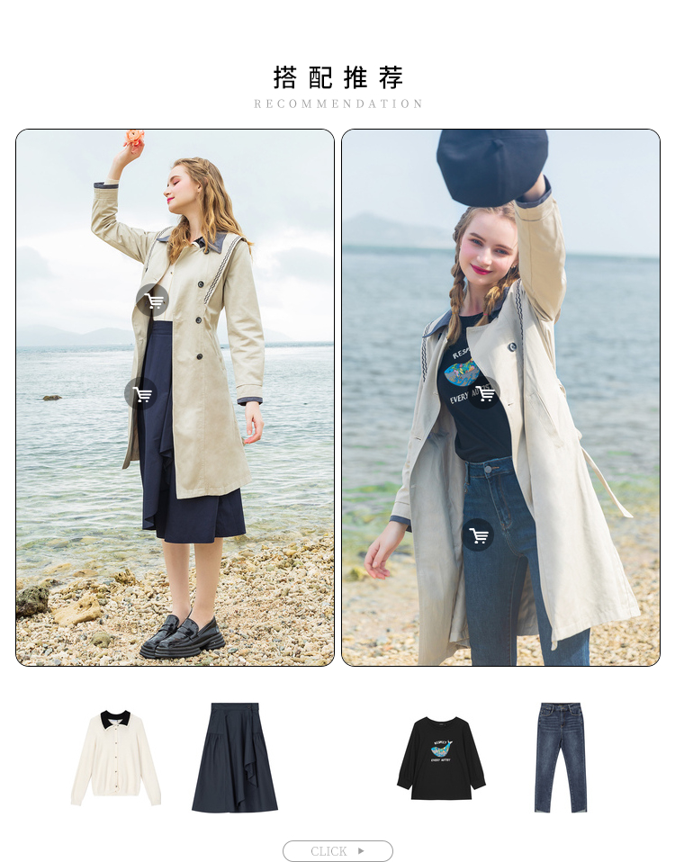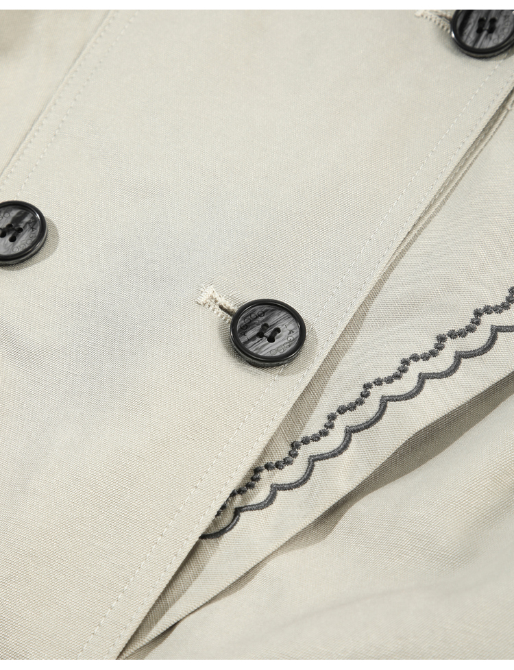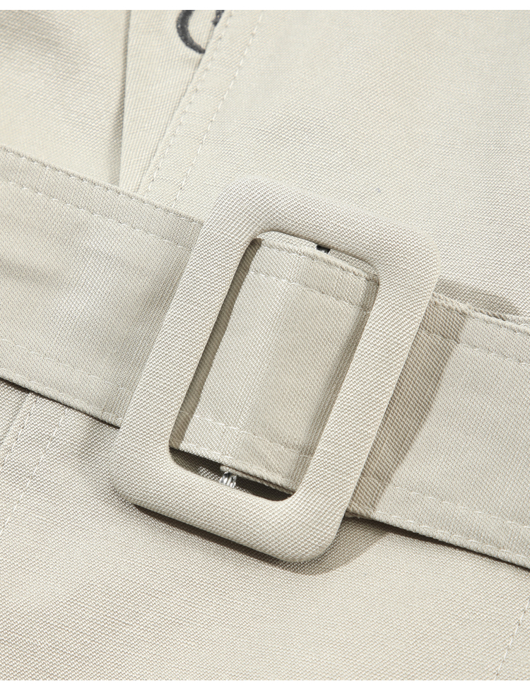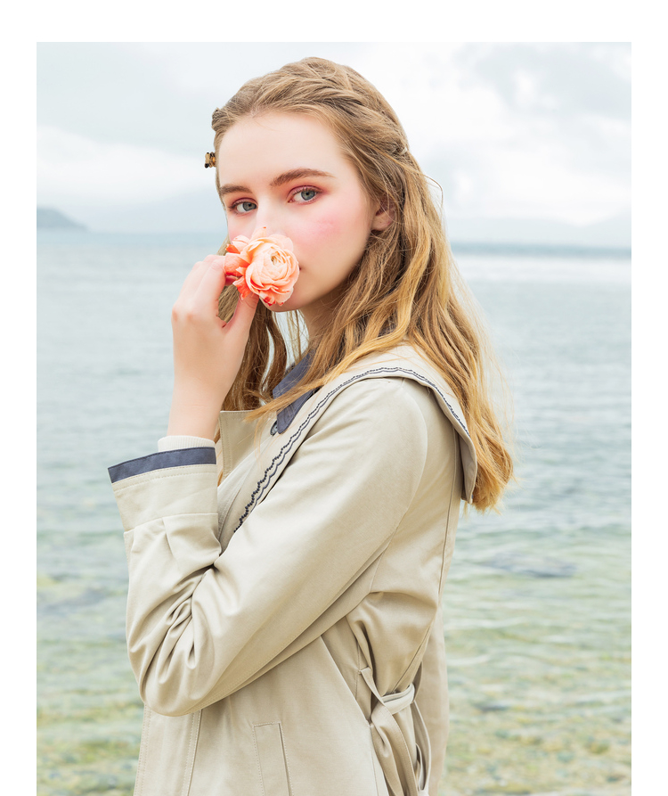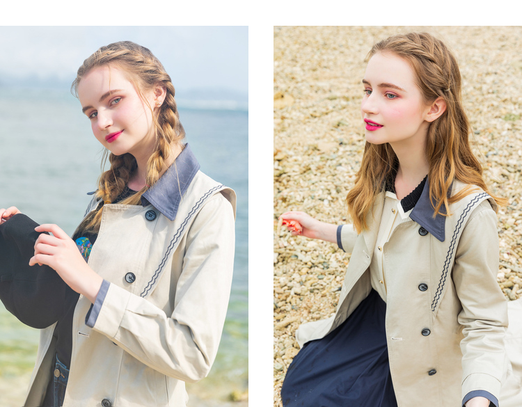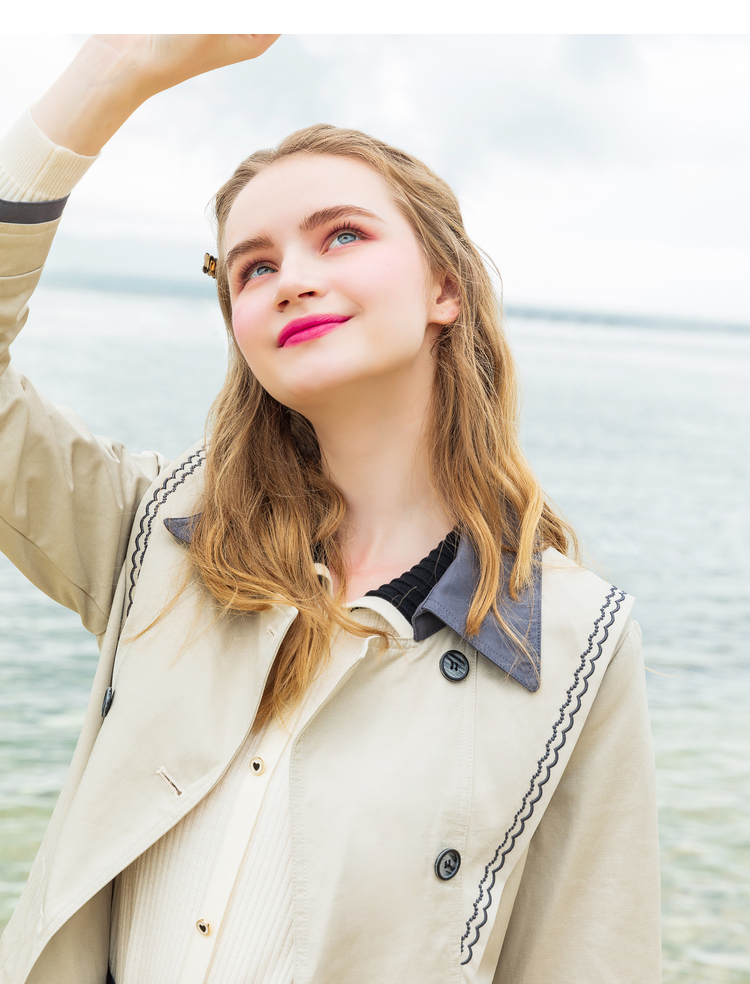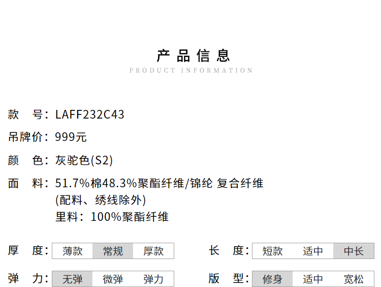 Lagogo拉谷谷2022春季新款翻领中长款双排扣灰驼色风衣女修身外套 LAFF232C43