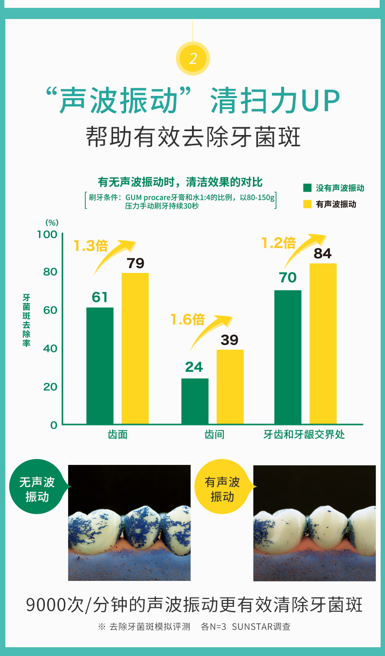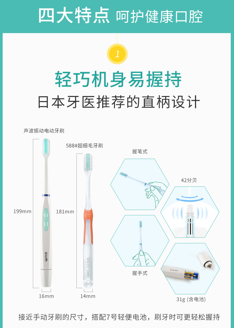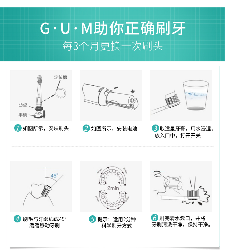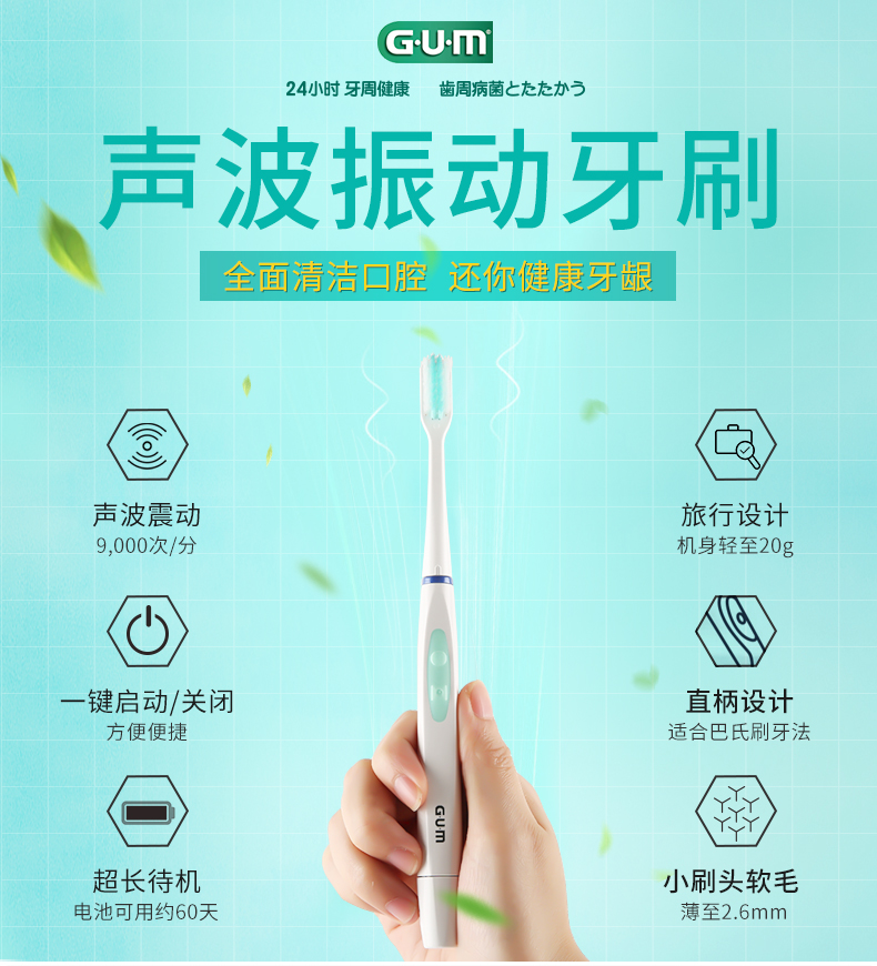GUM超声波电动牙刷赠4支刷头(不支持无理由退换)[福利品]