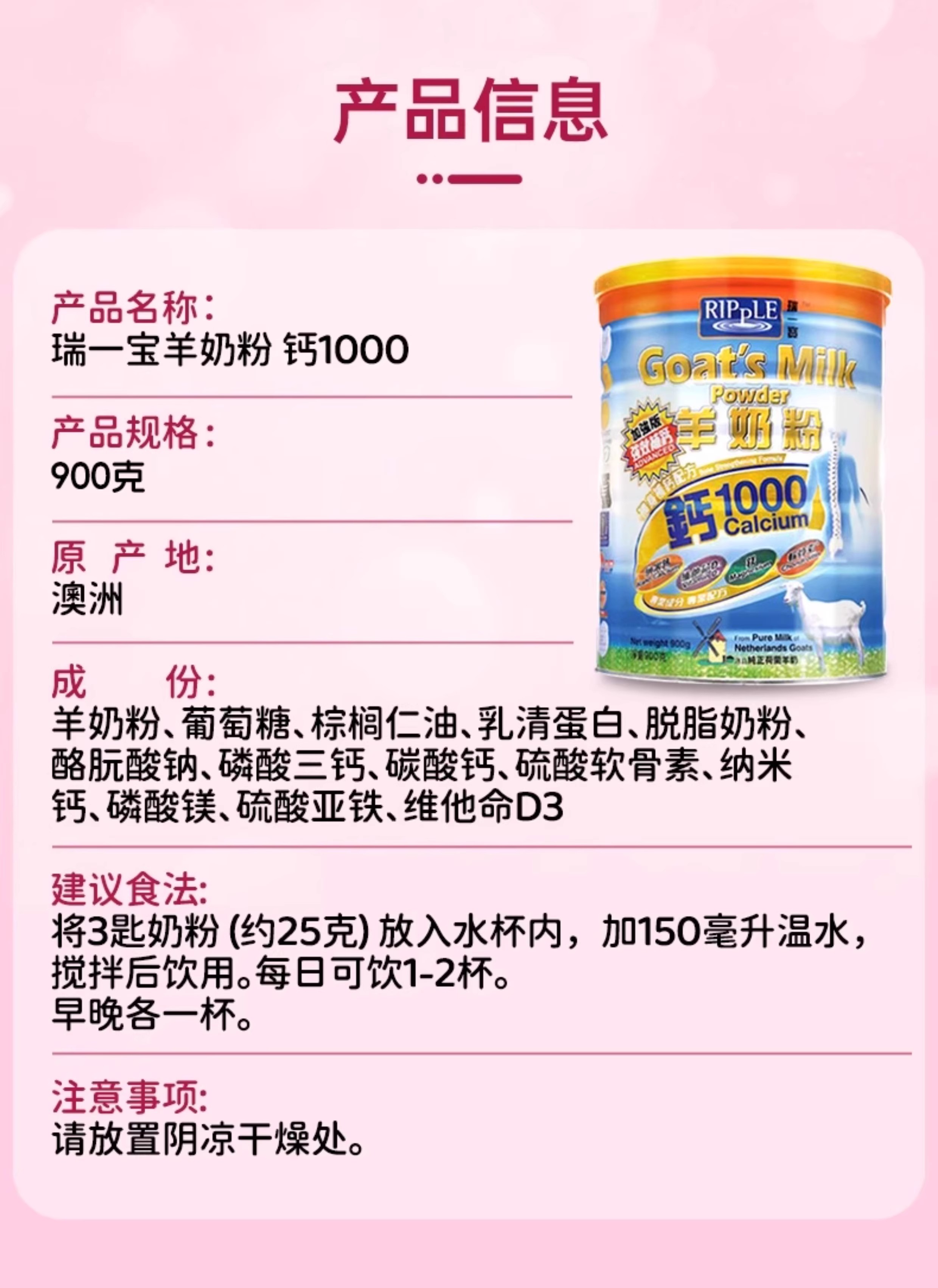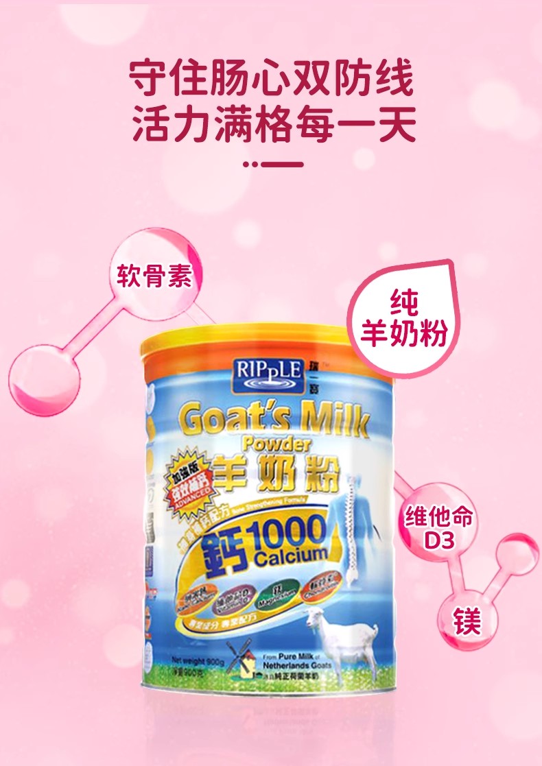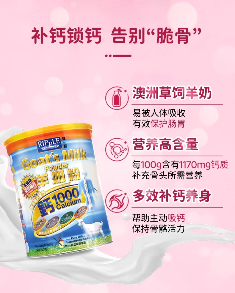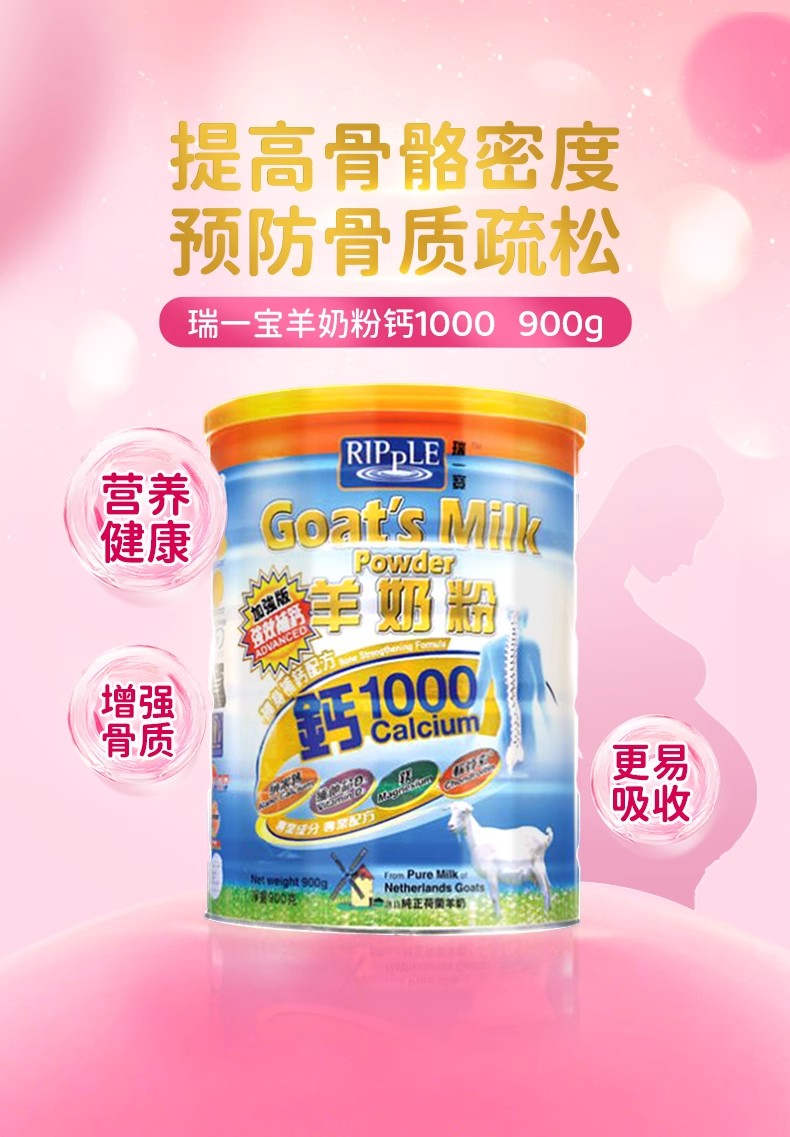 瑞一宝Ripple 钙1000羊奶粉900克 高钙羊奶粉 成人奶粉