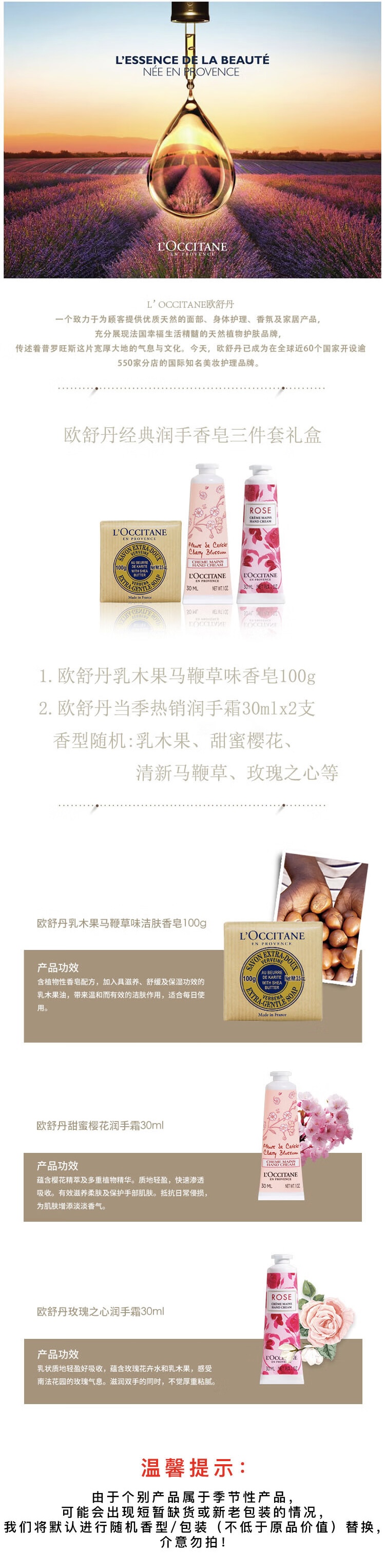 【多样屋专柜】欧舒丹经典润手香皂3件套礼盒