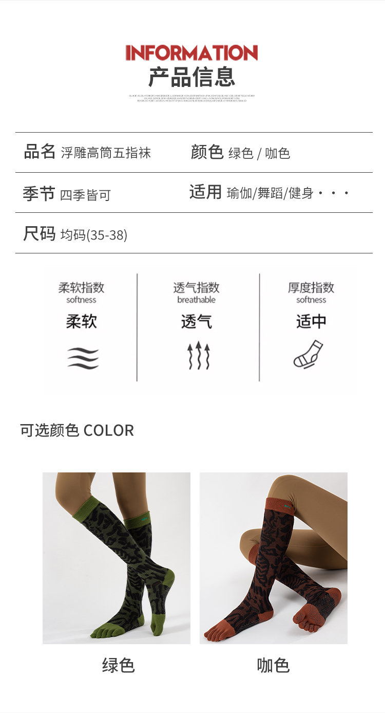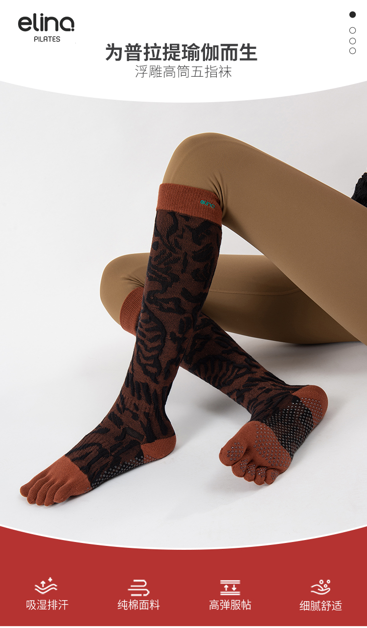 一恋普拉提2026新款浮雕高筒五指袜EYG24016