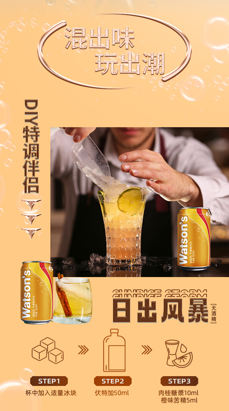 屈臣氏苏打汽水迷你罐混合装 三味齐享 气泡饮料 调酒推荐 200ml*8罐