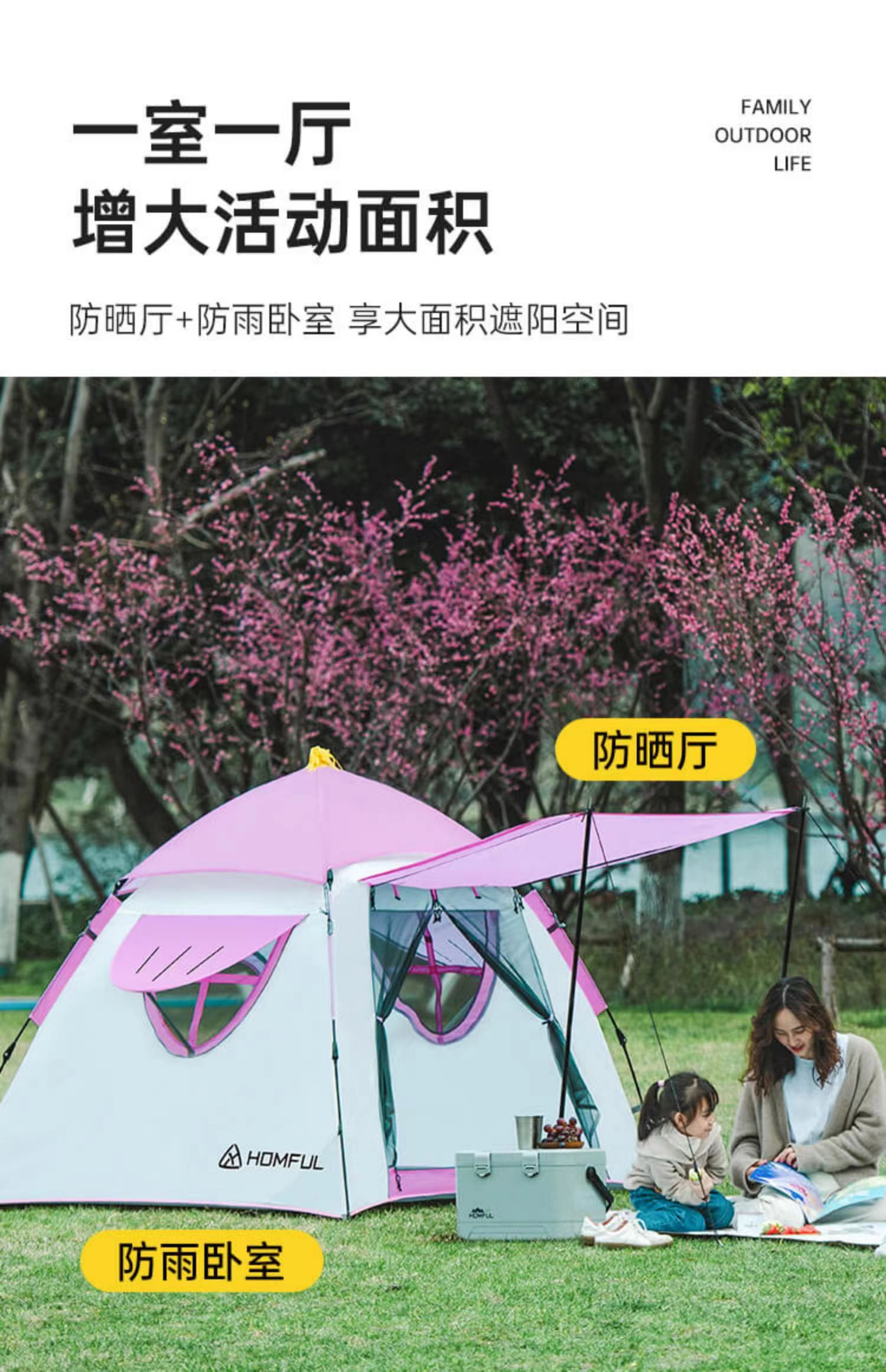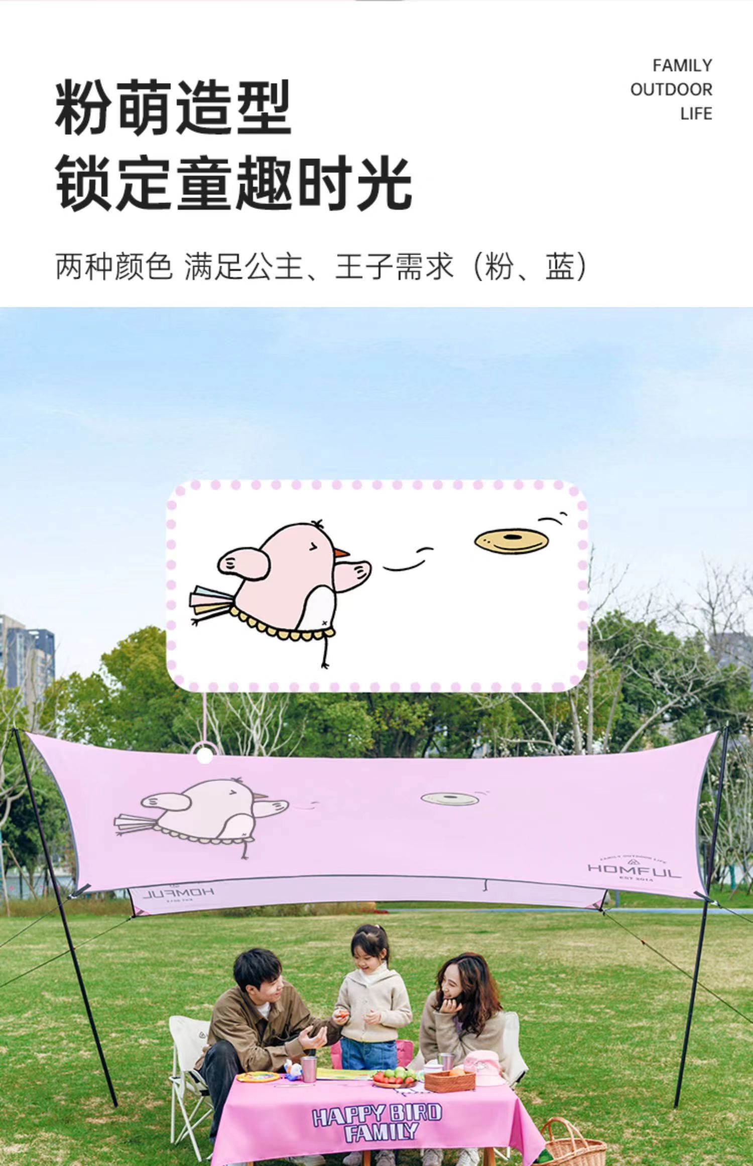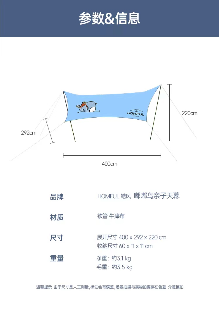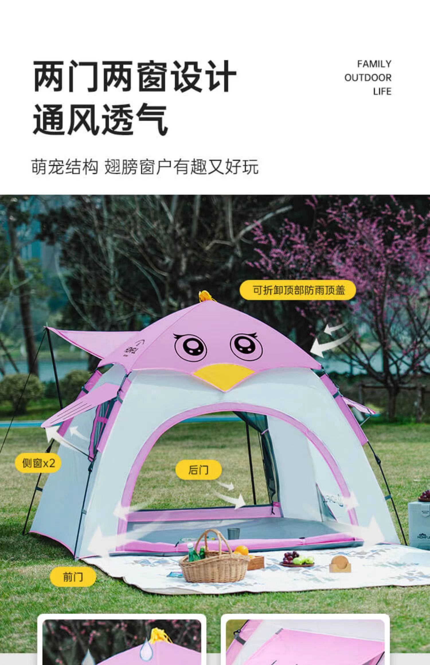 天幕+帐篷套餐 芊陌鸟户外-皓风小鸟亲子天幕全自动便携式亲子露营郊游野餐天幕休闲帐篷