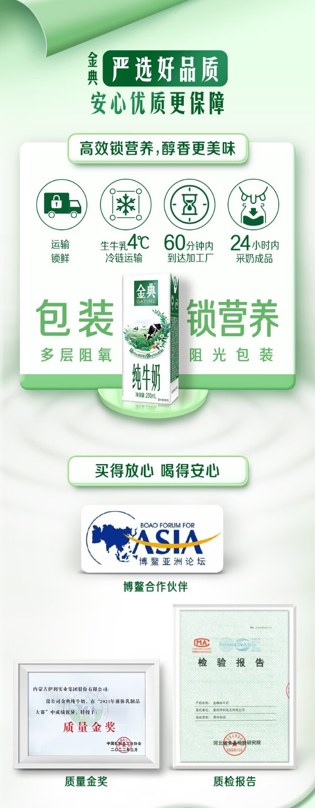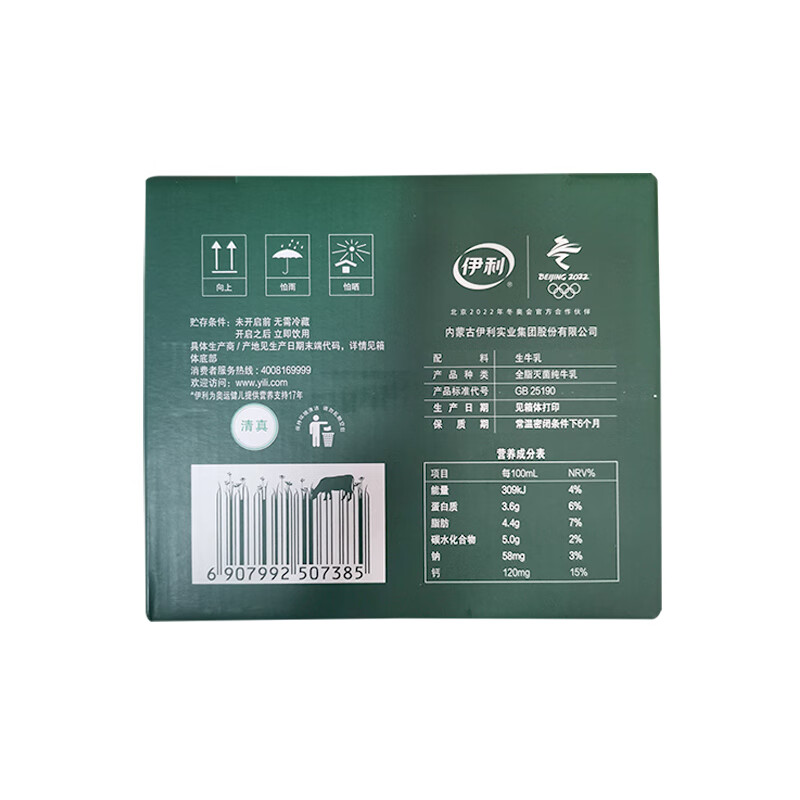 【自营】伊利 金典纯牛奶 250ml*12支