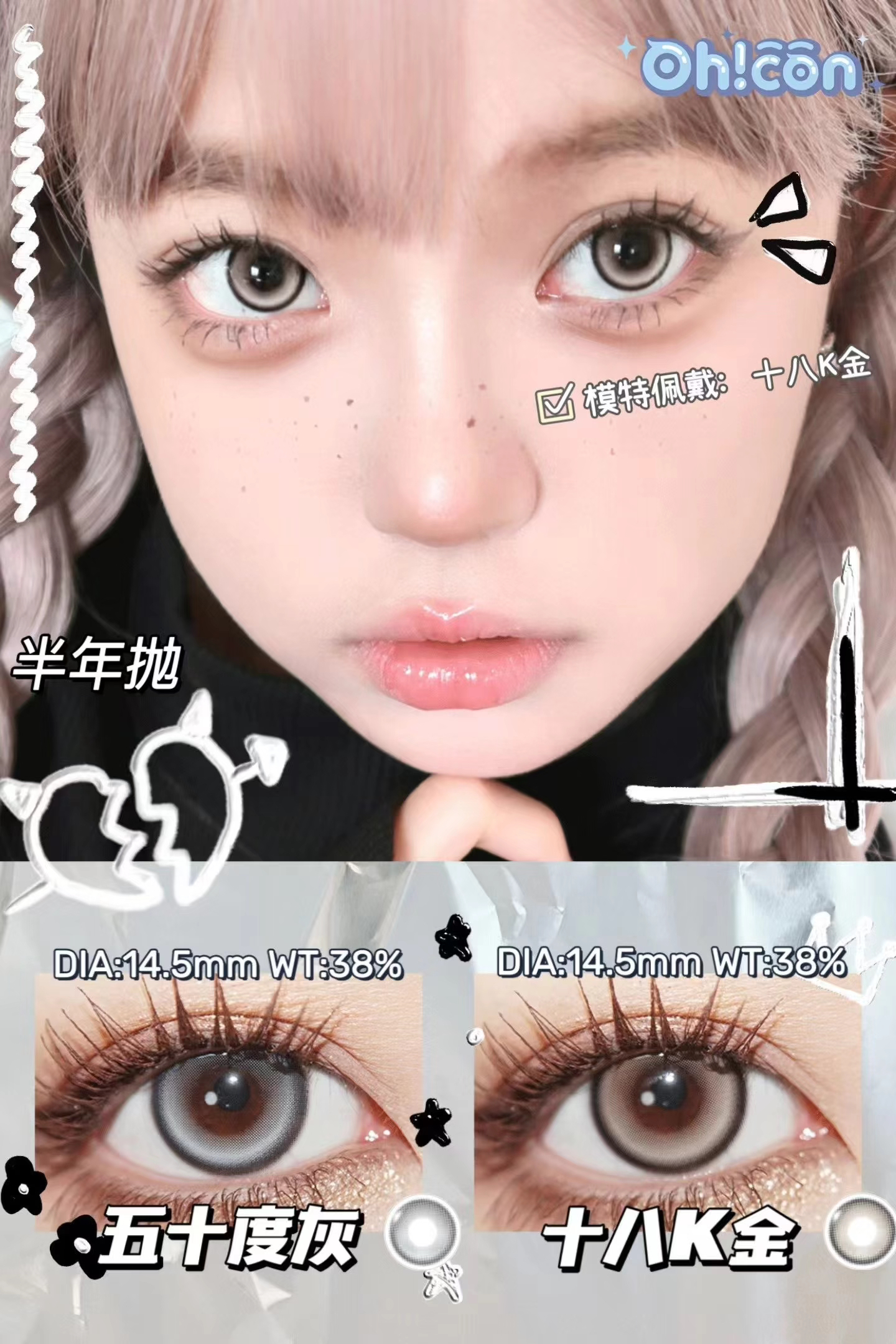 【半年抛】十八k金 | Hancon /Ohcon | 大直径14.5 着色13.8 | 平价美瞳 | 98两幅任选 所以是49元一副(色板都在详情页内 记得下滑查看 )