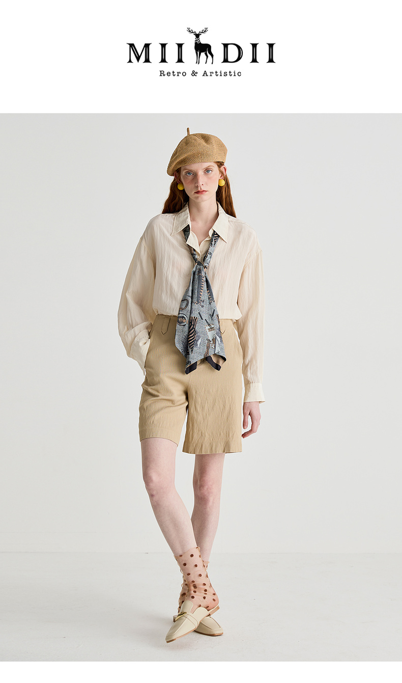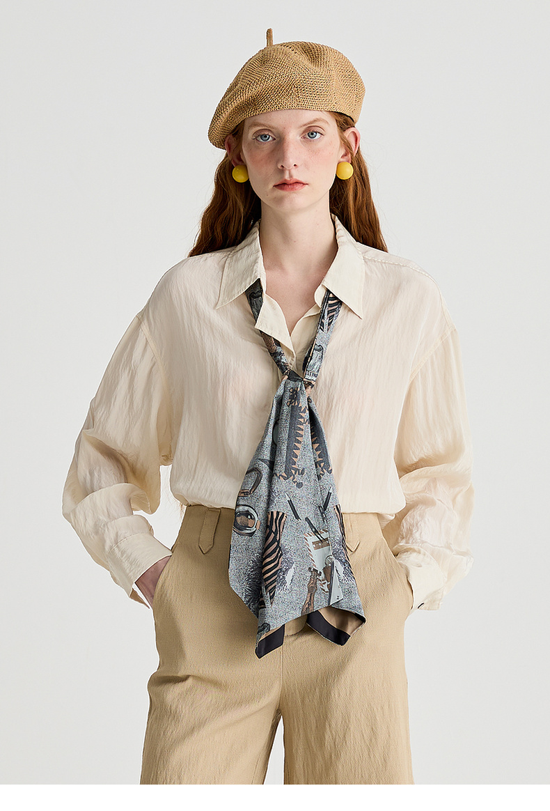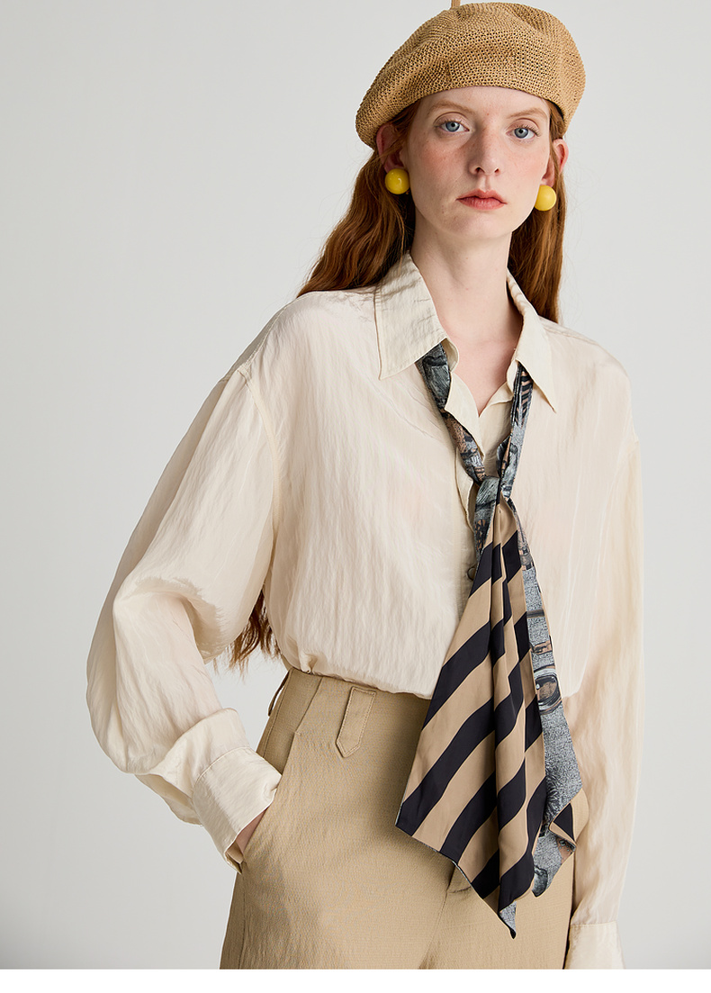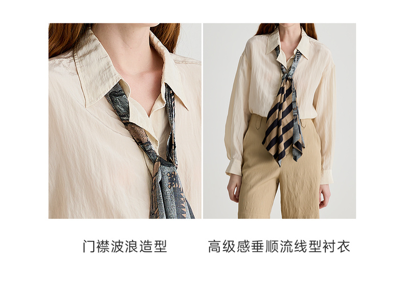 谜底衬衫长袖女2025夏季新品通勤波浪大廓形H型中长衬衣252MC0563
