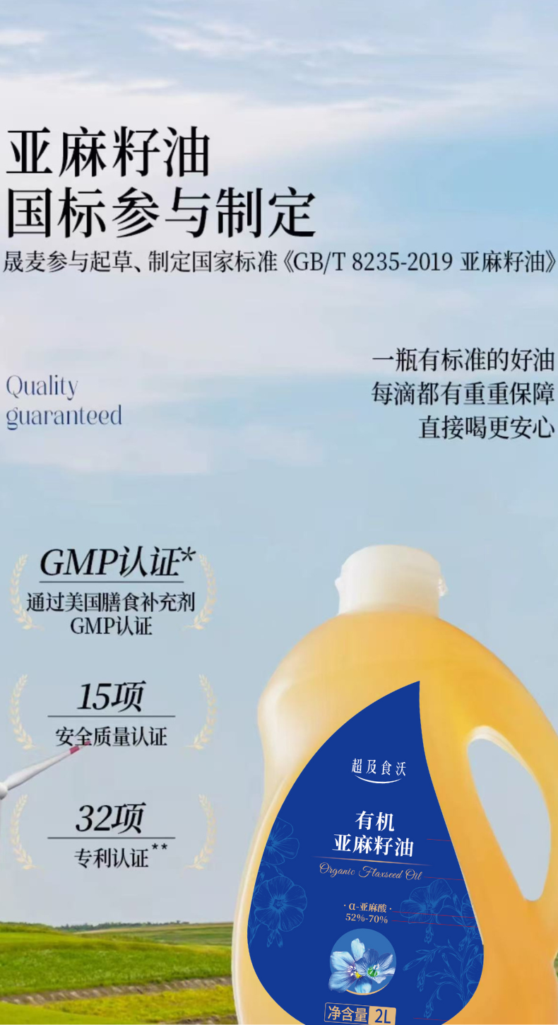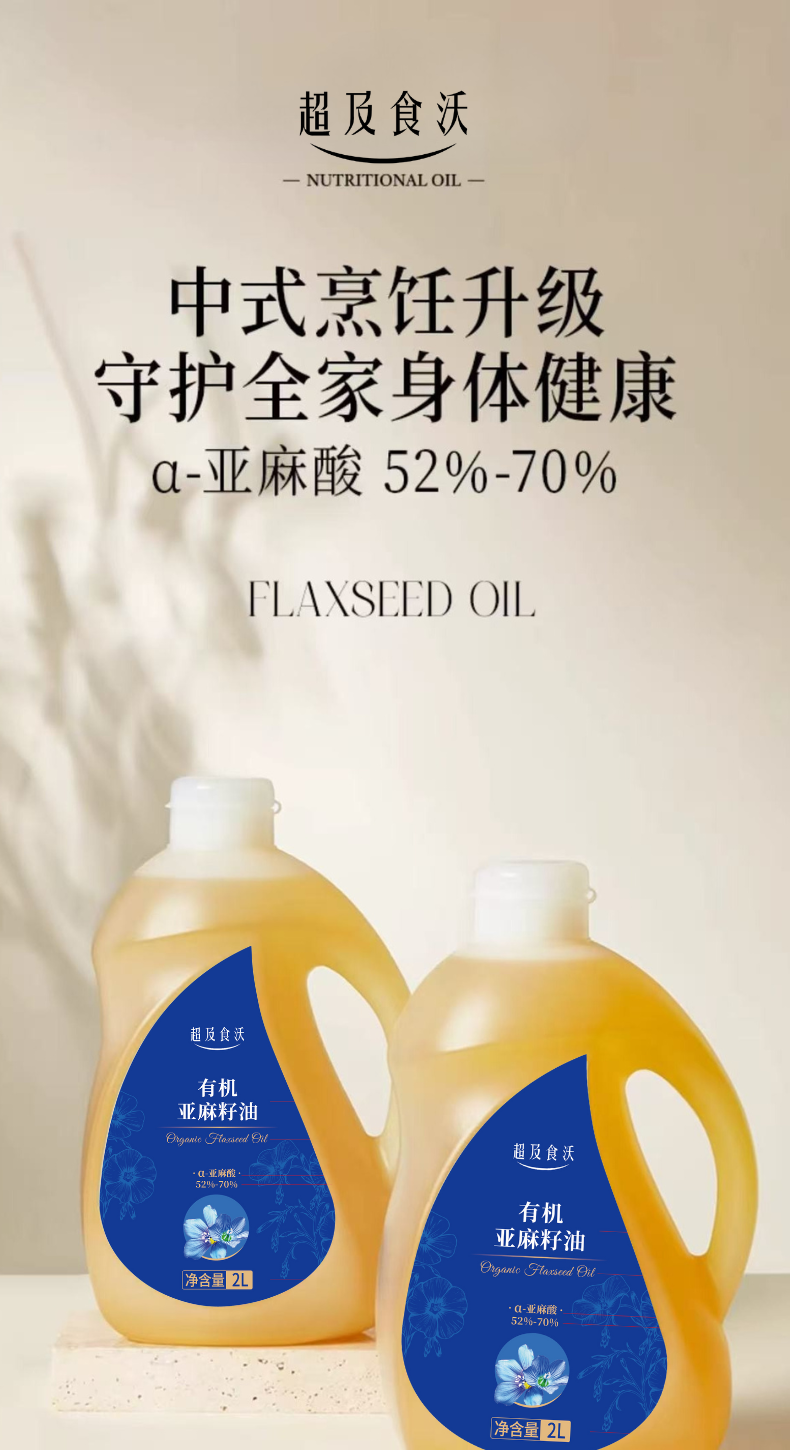 超及食沃有机亚麻籽油家用热炒油2L装
