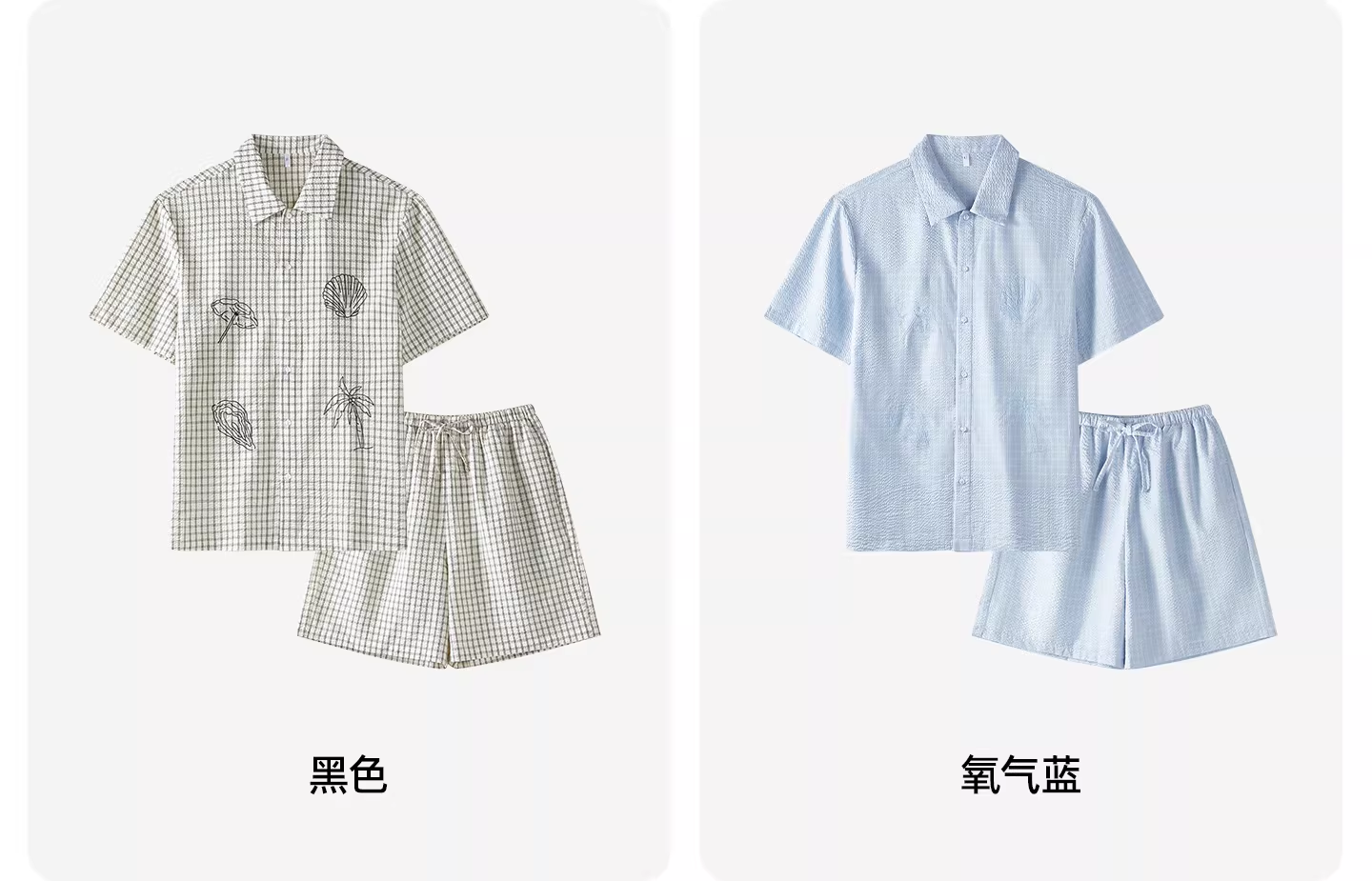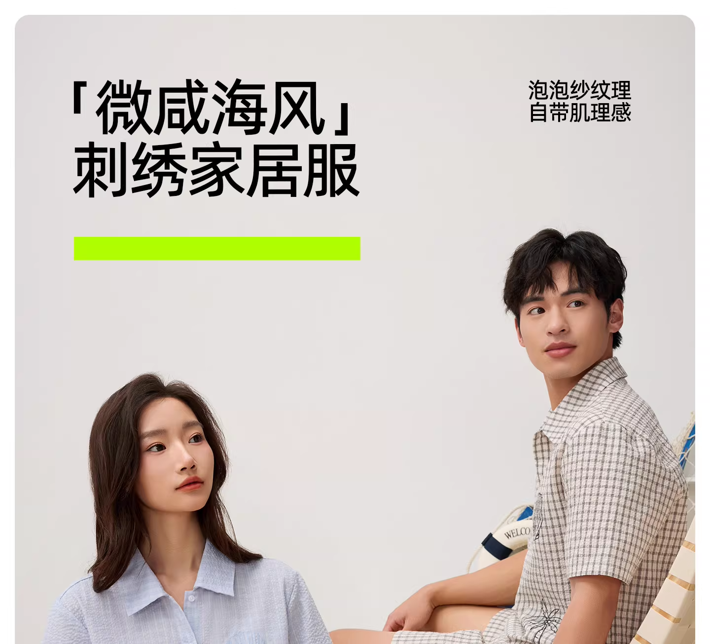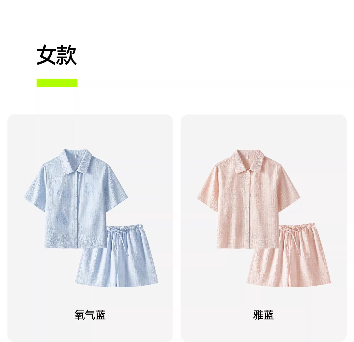 【微成海风】刺绣家居服有棵树睡衣女款春泡泡纱男士短袖刺绣家居服可外穿春夏季情侣套装
