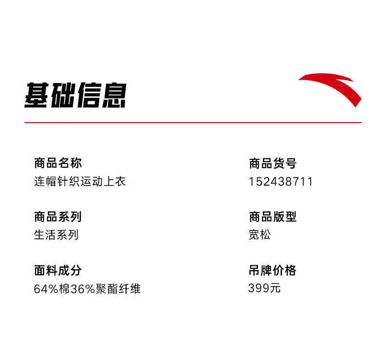 【超值】安踏(ANTA)运动外套男当季连帽字母针织运动上衣开衫连帽卫衣152438711