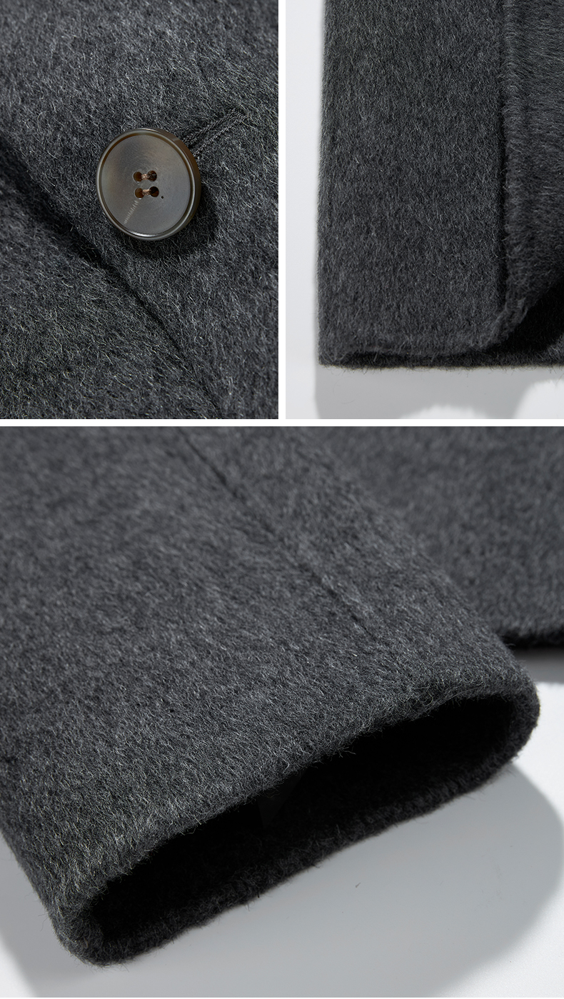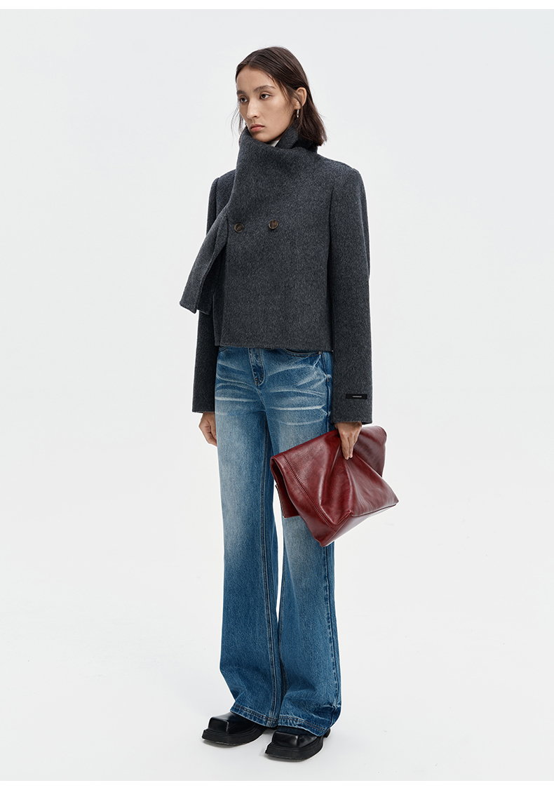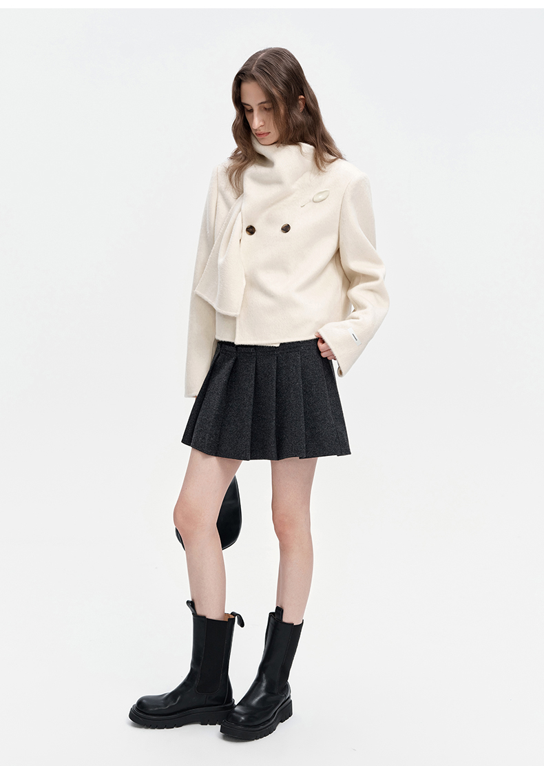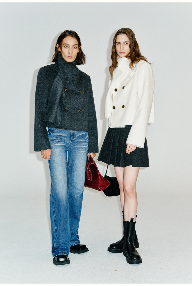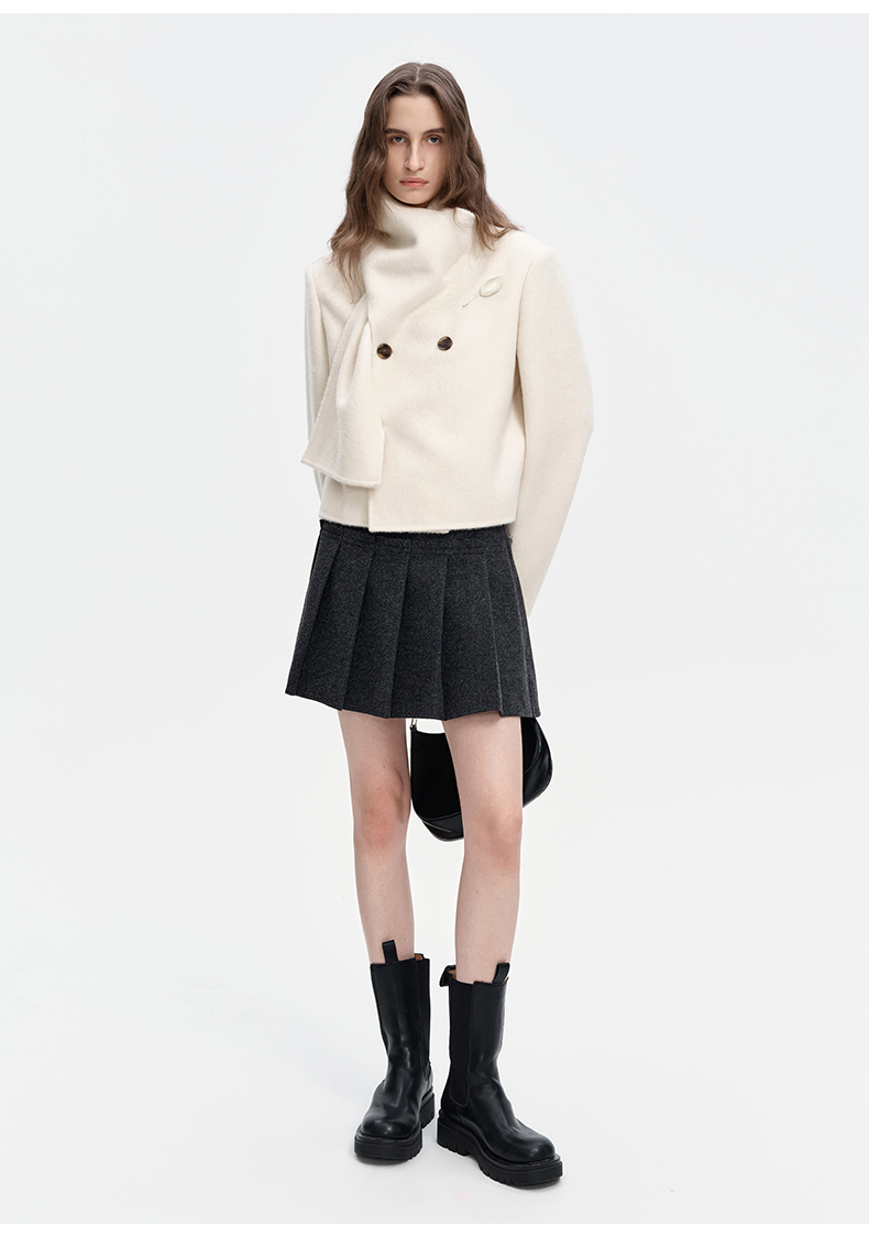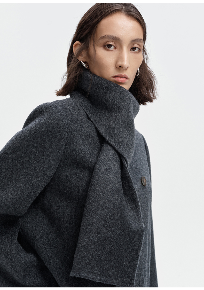 SELFWHO澳洲进口绵羊毛羊驼毛双面呢围巾领短外套女2024冬款大衣