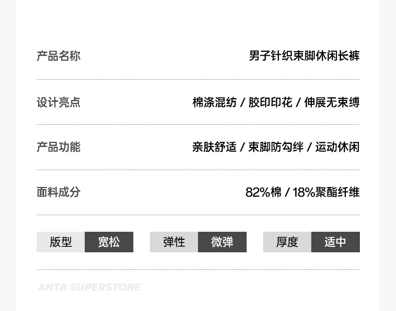 超级安踏休闲裤男子秋季新款针织长裤运动裤束脚卫裤152548304U