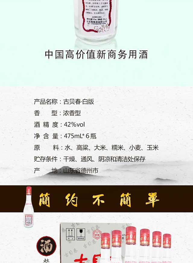 古贝春经典白板42度浓香白酒(一箱装)