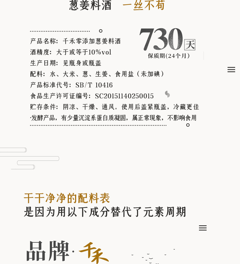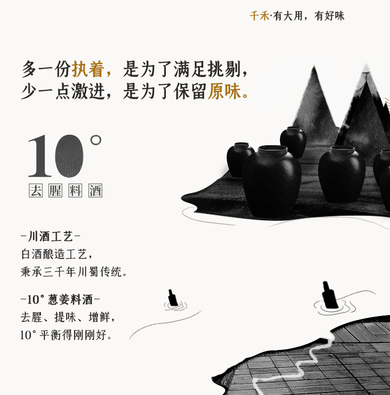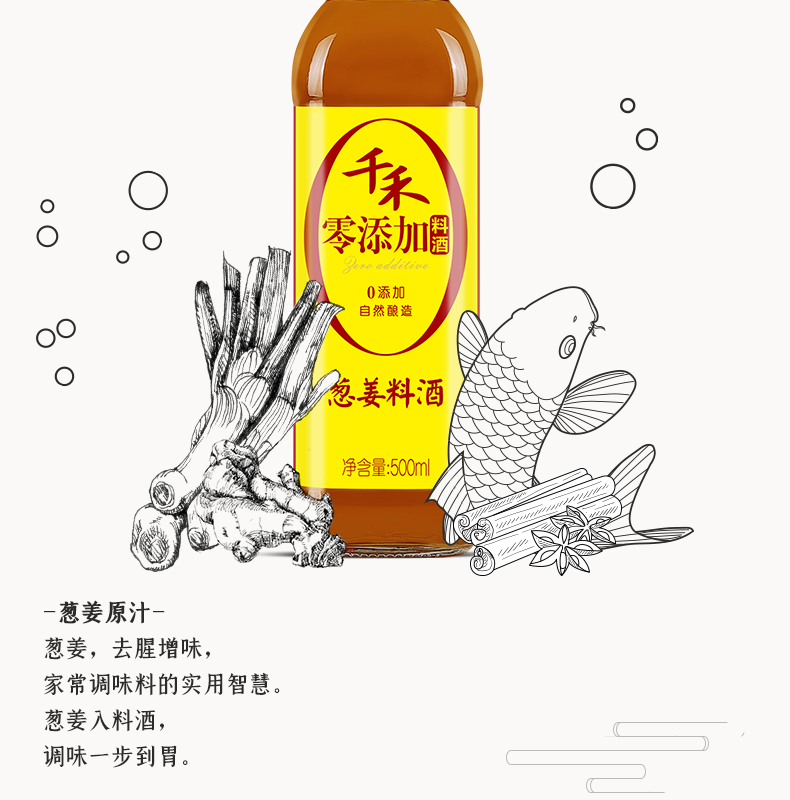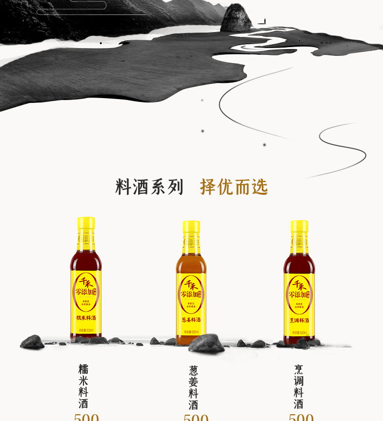 千禾 料酒+白醋 零添加葱姜料酒500ml+白醋500ml