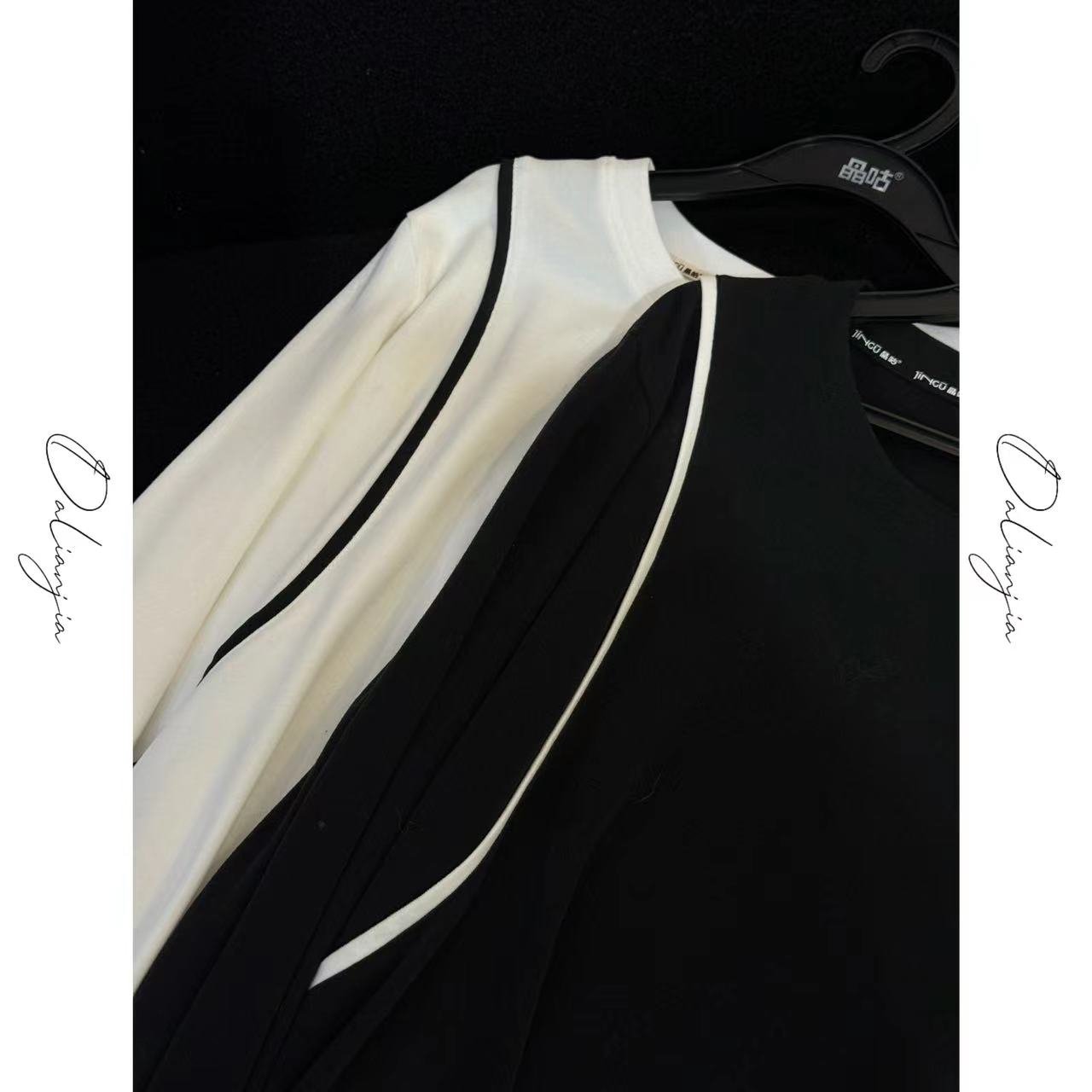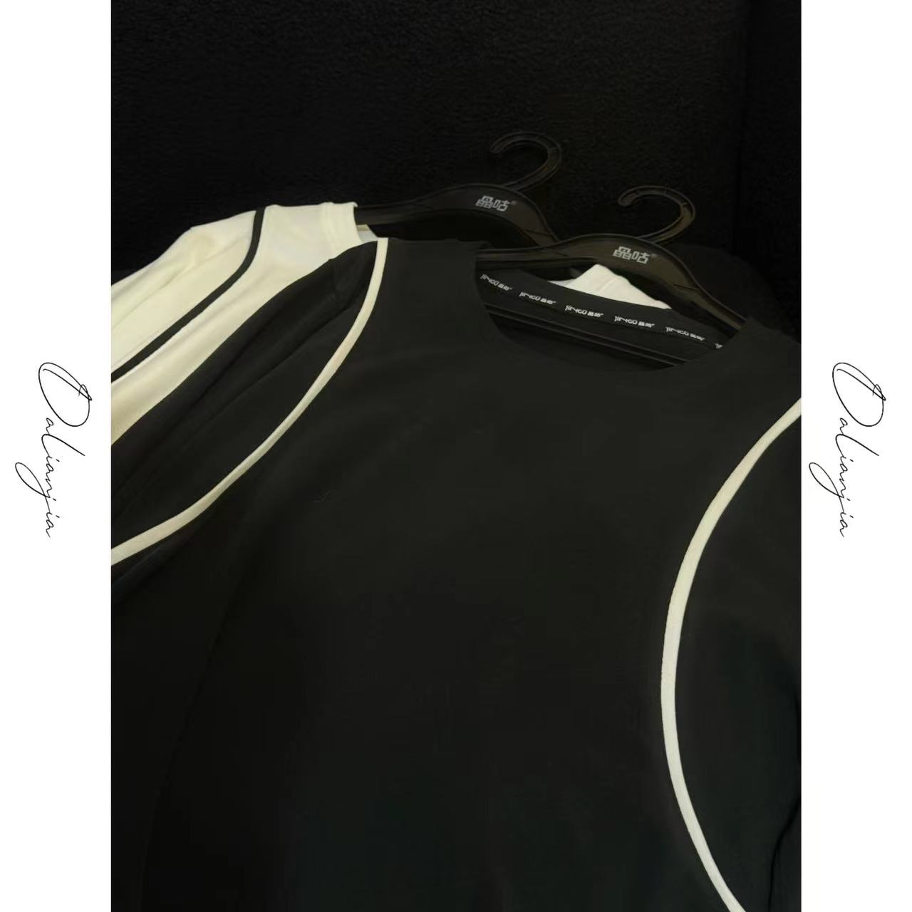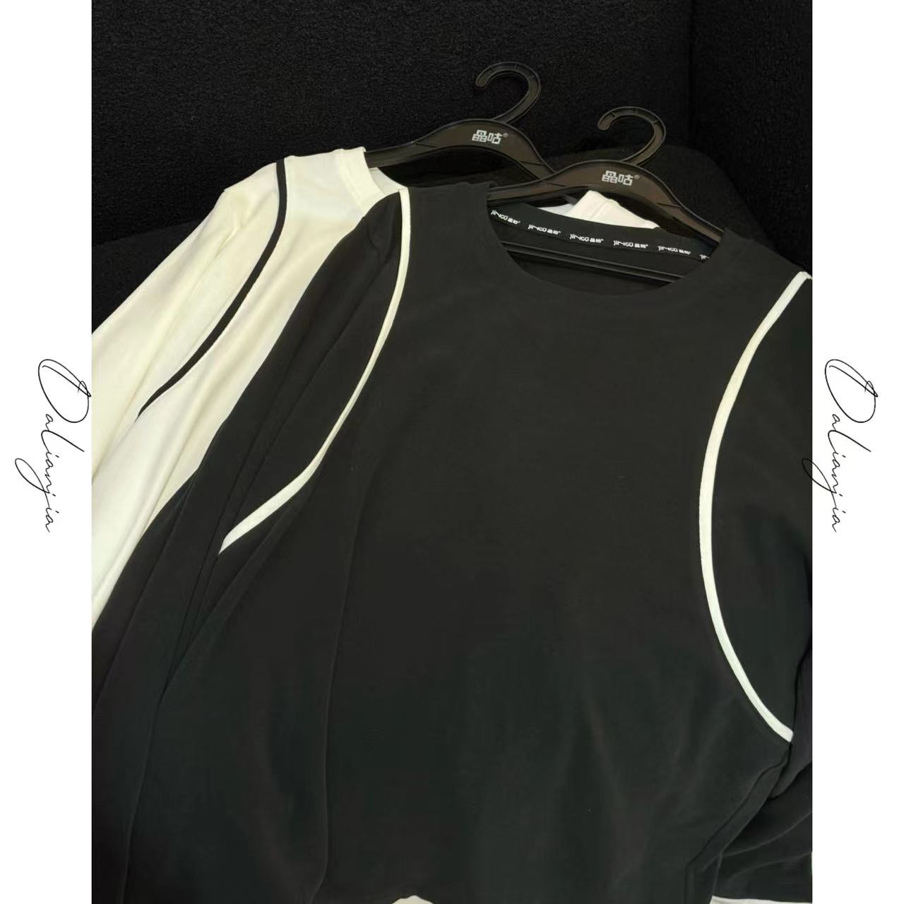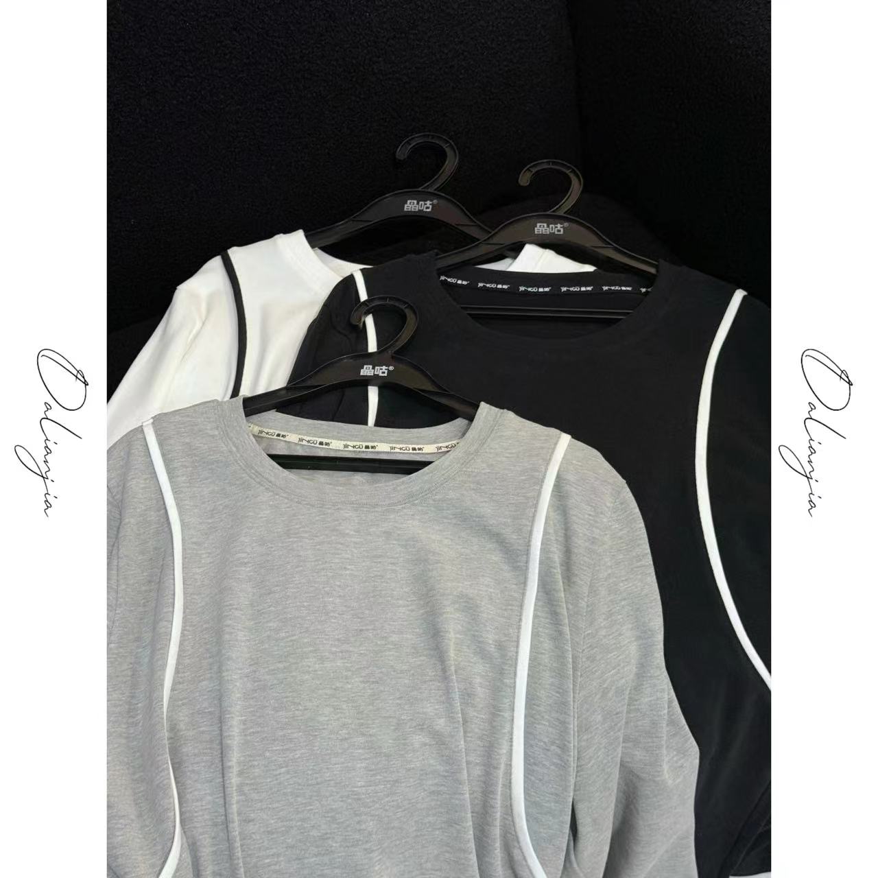 【时光书签】韩系肩部撞色线条打底衫上衣时尚休闲百搭