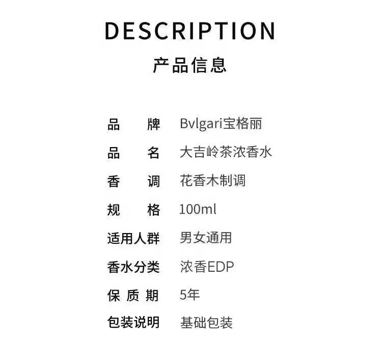 【保税仓】BVLGARI宝格丽男士淡香水大吉岭茶香水100ml(原版)(25年限定)