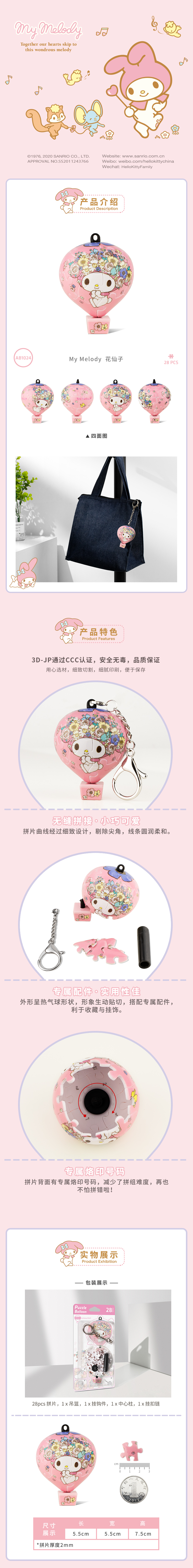 28片 热气球造型 钥匙扣拼图 AB1024 My Melody 花仙子
