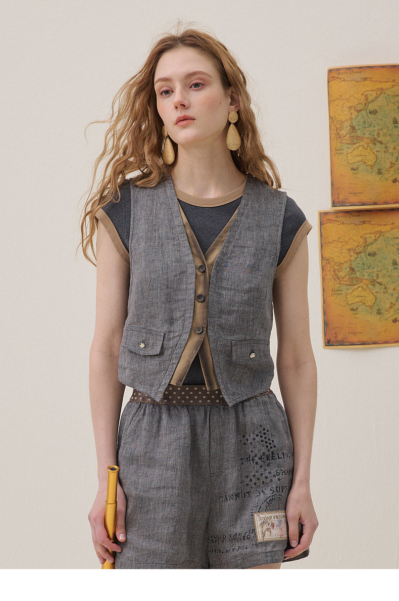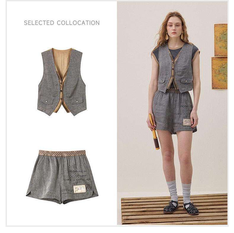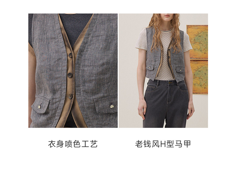 谜底西装马甲2026年夏季新品老钱风复古拼接艺术马夹女262MM0628