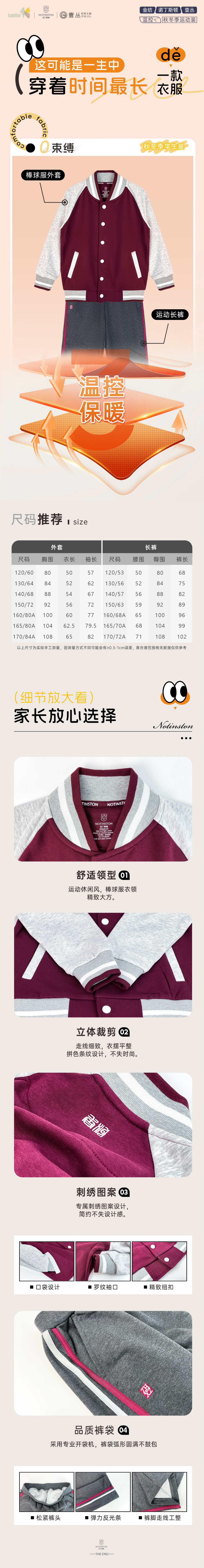 【珠海电台专享-小学秋冬外套-瑞士温控面料四季恒温】香洲区小学生校服 秋冬季棒球服外套&深灰色长裤