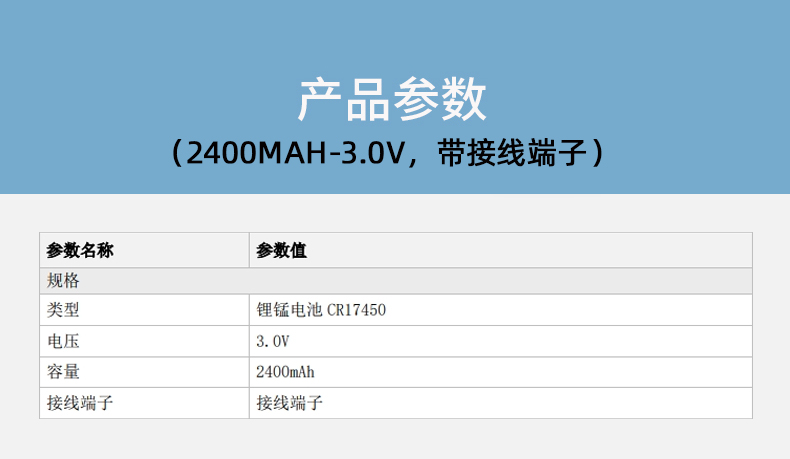 锂锰电池CR17450(2400mAh-3.0V,带接线端子)