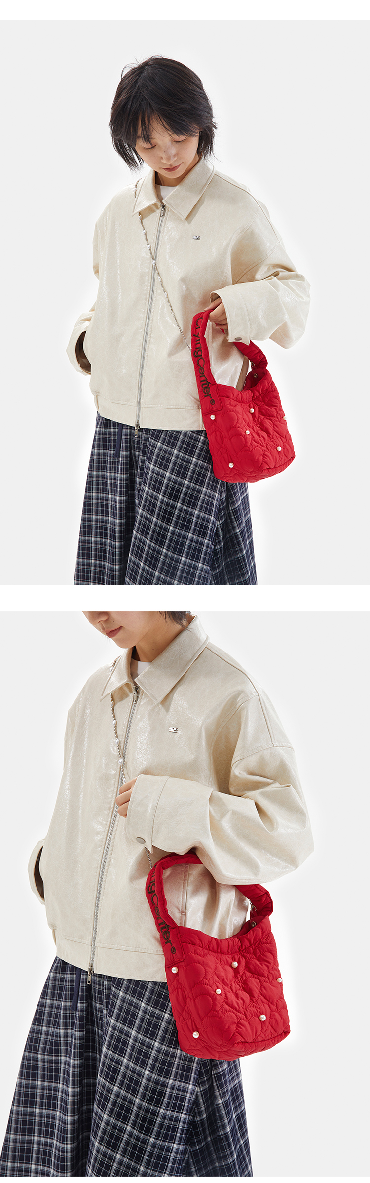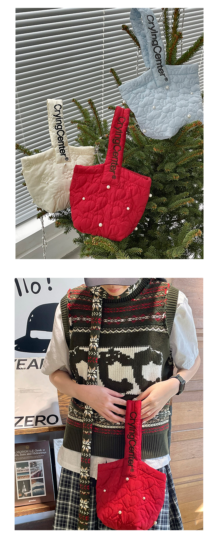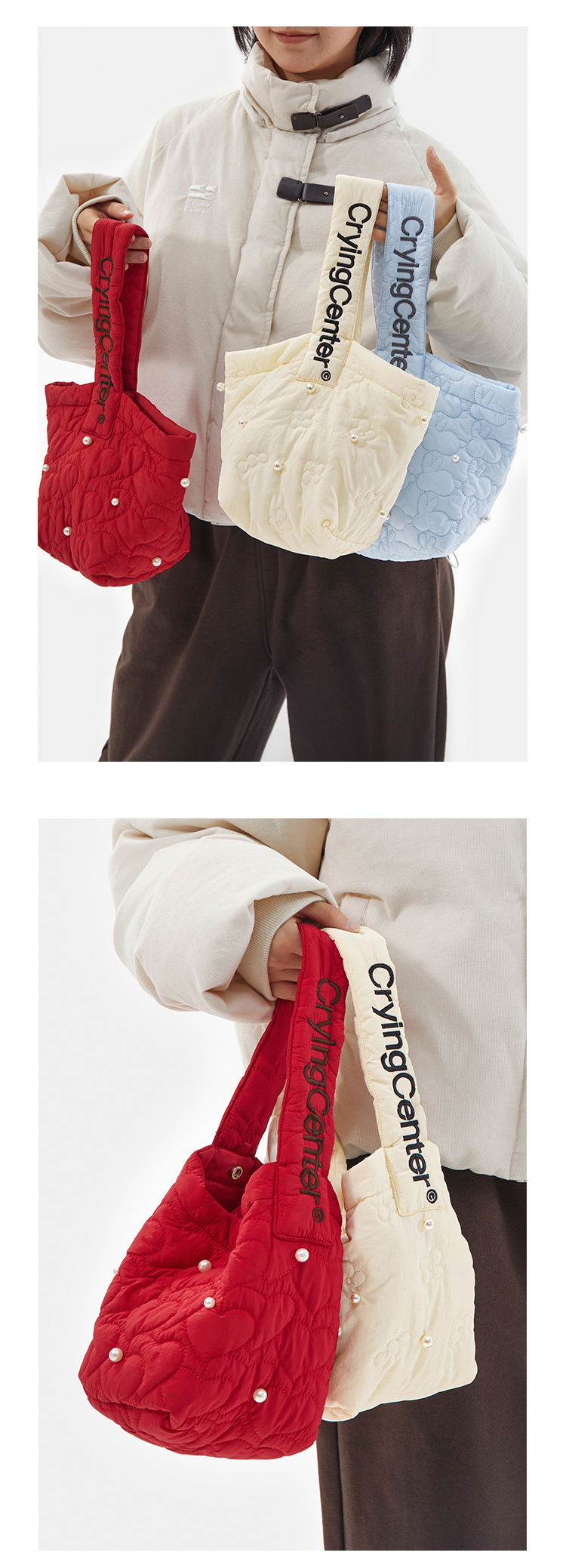 CryingCenter圣诞红云朵白baby蓝迷你云朵包珍珠链条小斜挎包
