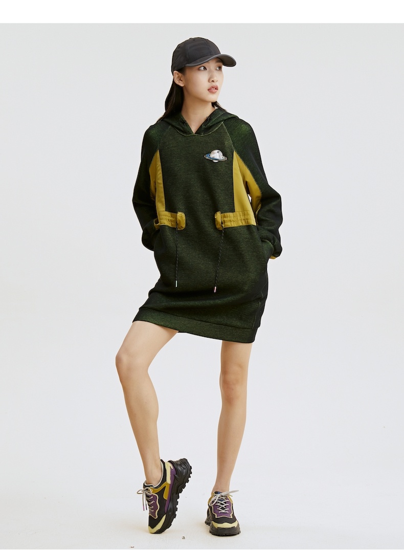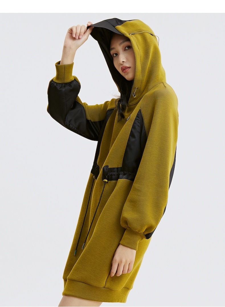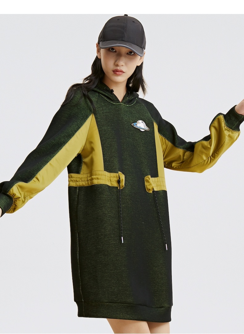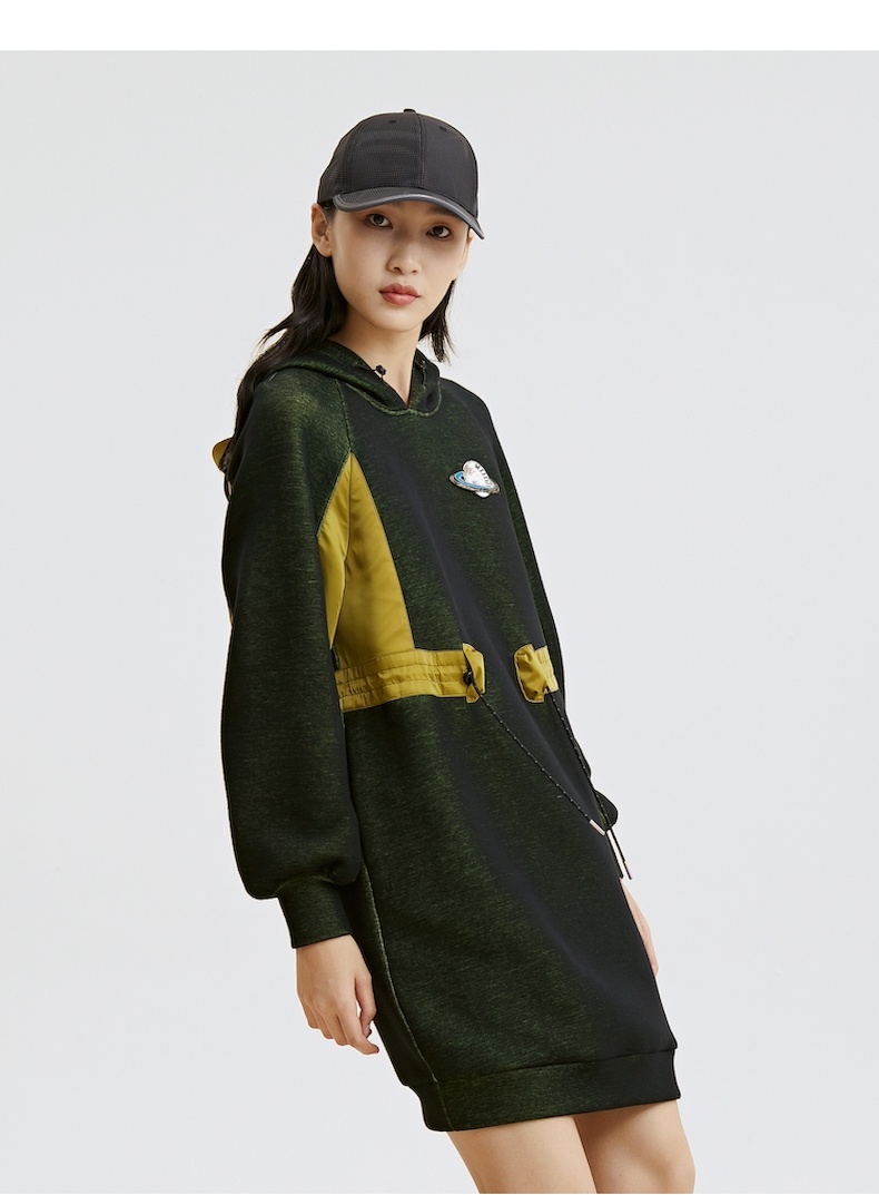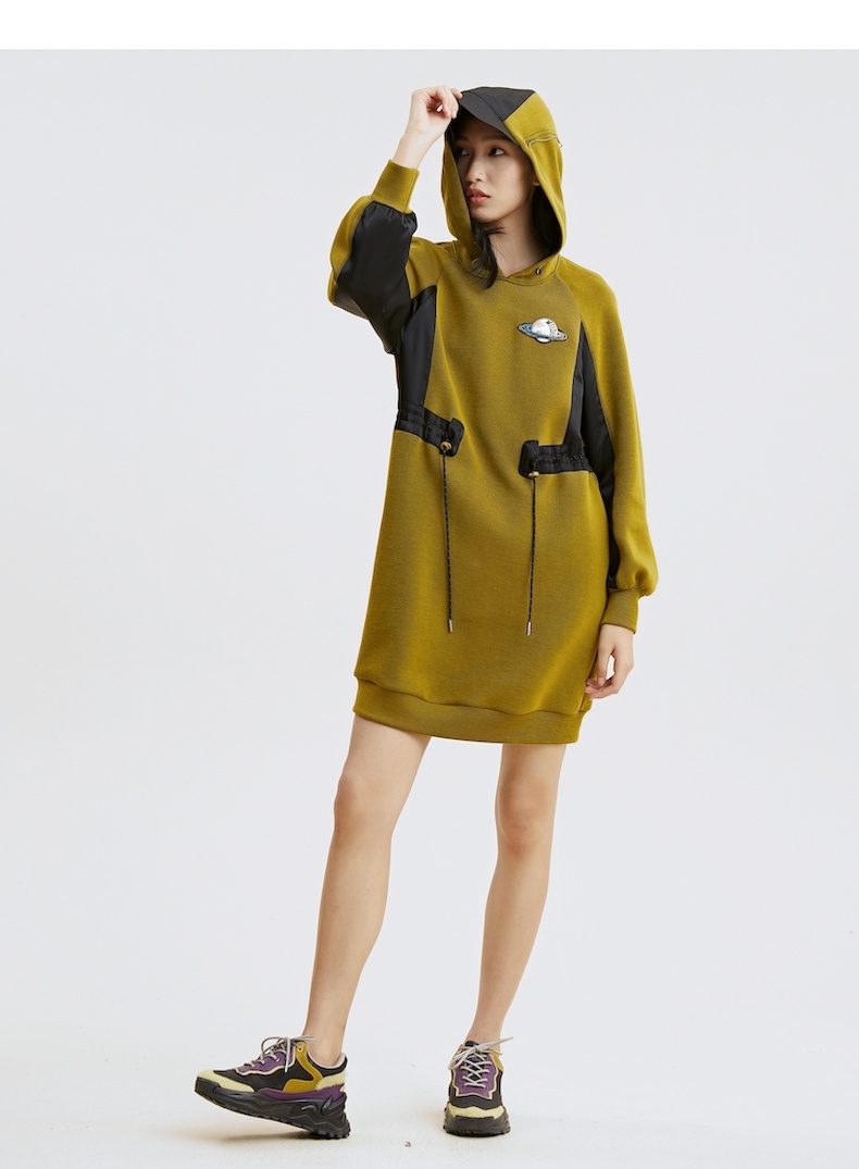 谜底2021秋季新款撞色拼接休闲连帽宽松卫衣连衣裙长袖213ML1742