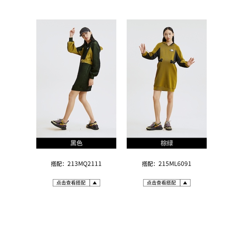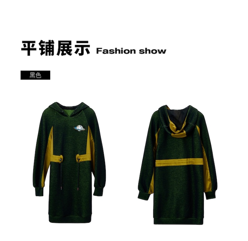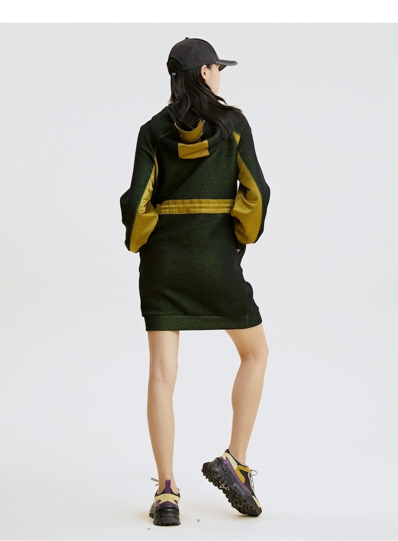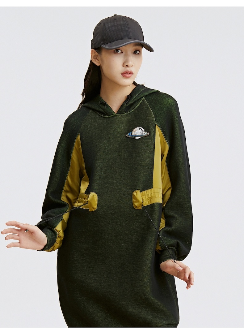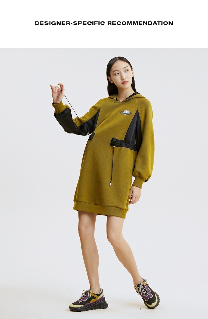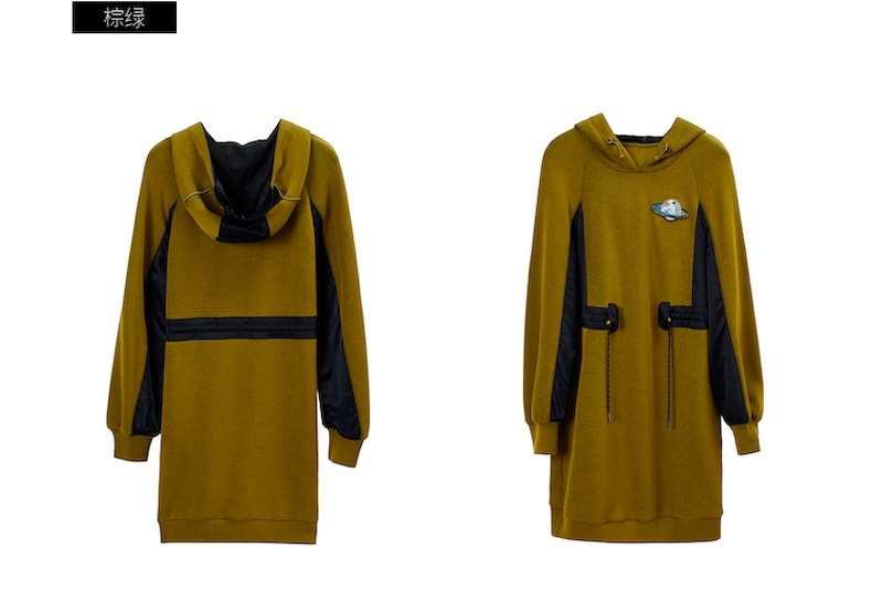 谜底2021秋季新款撞色拼接休闲连帽宽松卫衣连衣裙长袖213ML1742