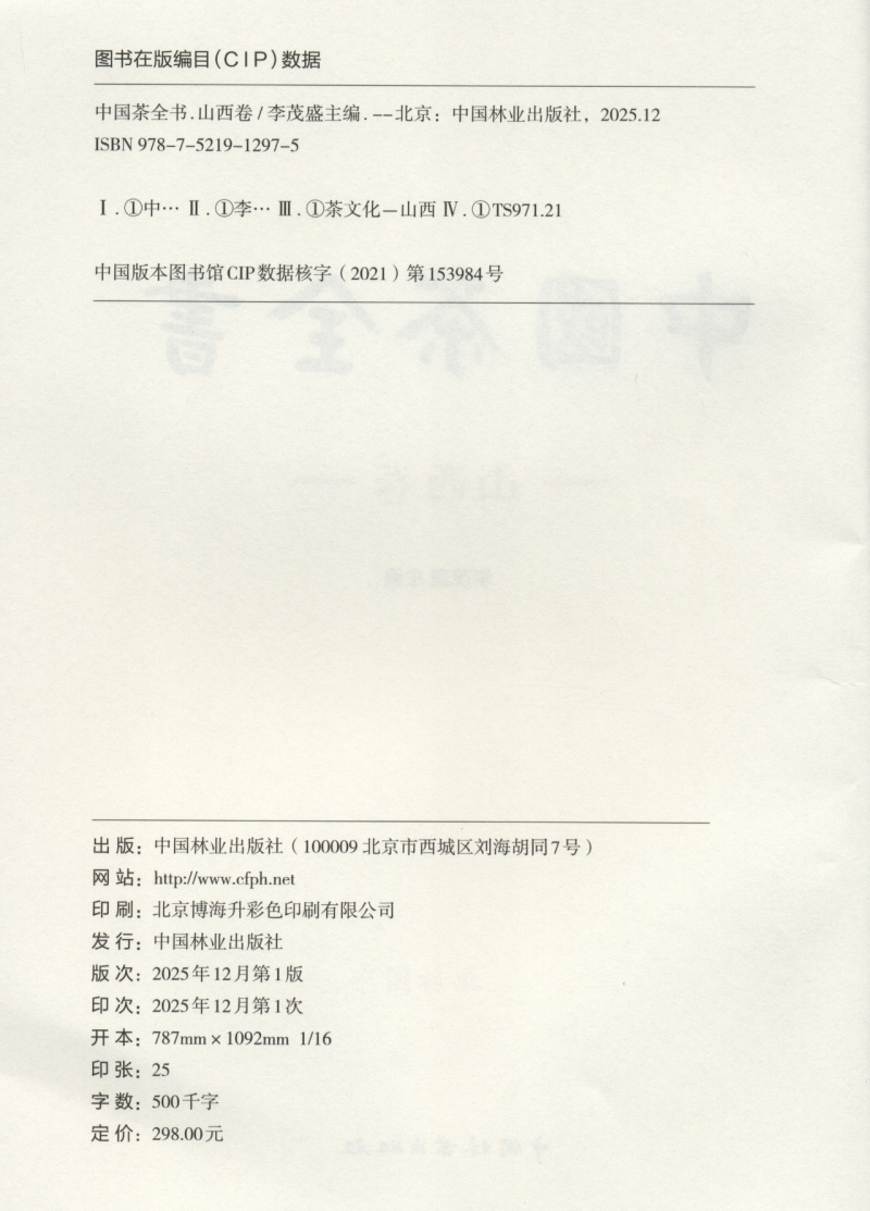 中国茶全书·山西卷 &1297 李茂盛编 权威茶文化资料工具书 详解山西茶商/茶贸/万里茶路 图文并茂 茶文化爱好者/行业研究者必备