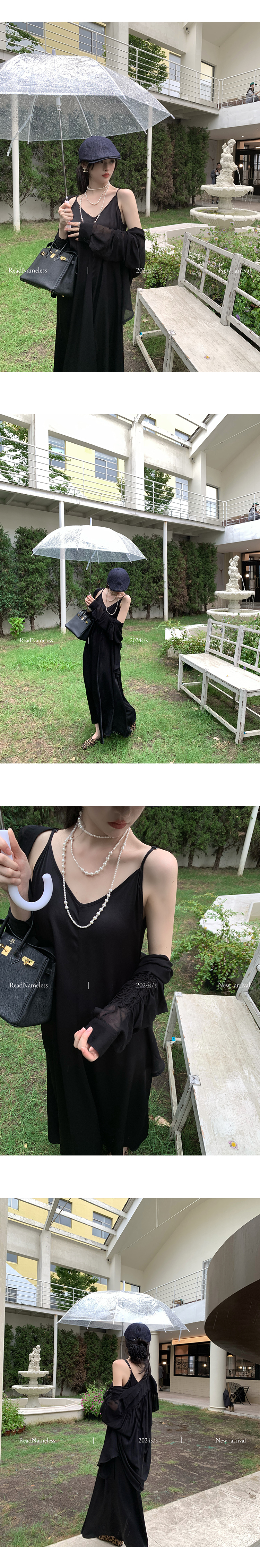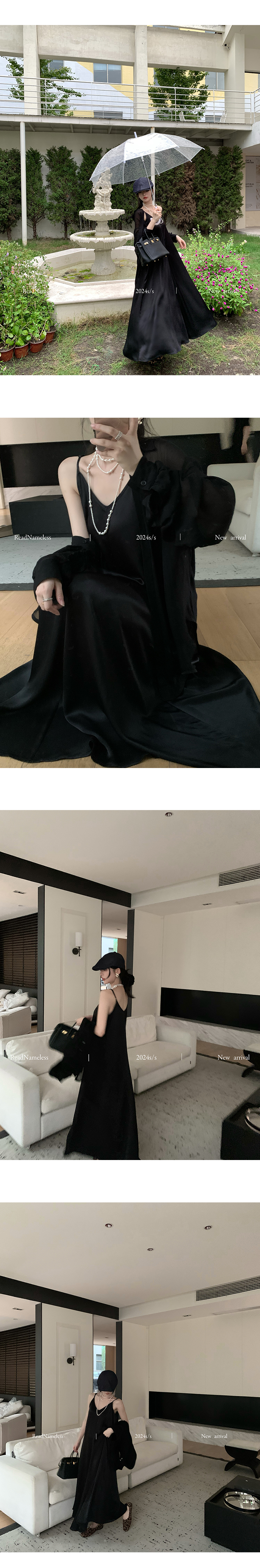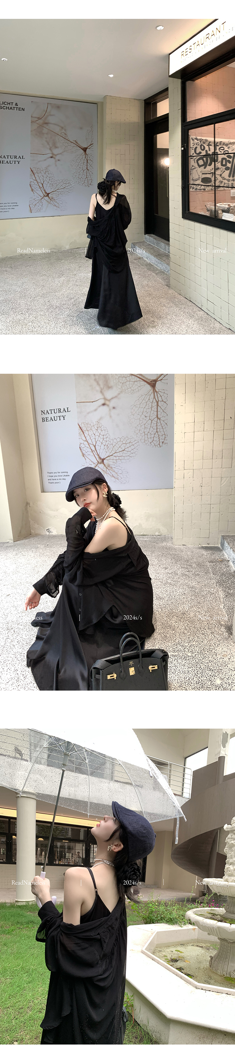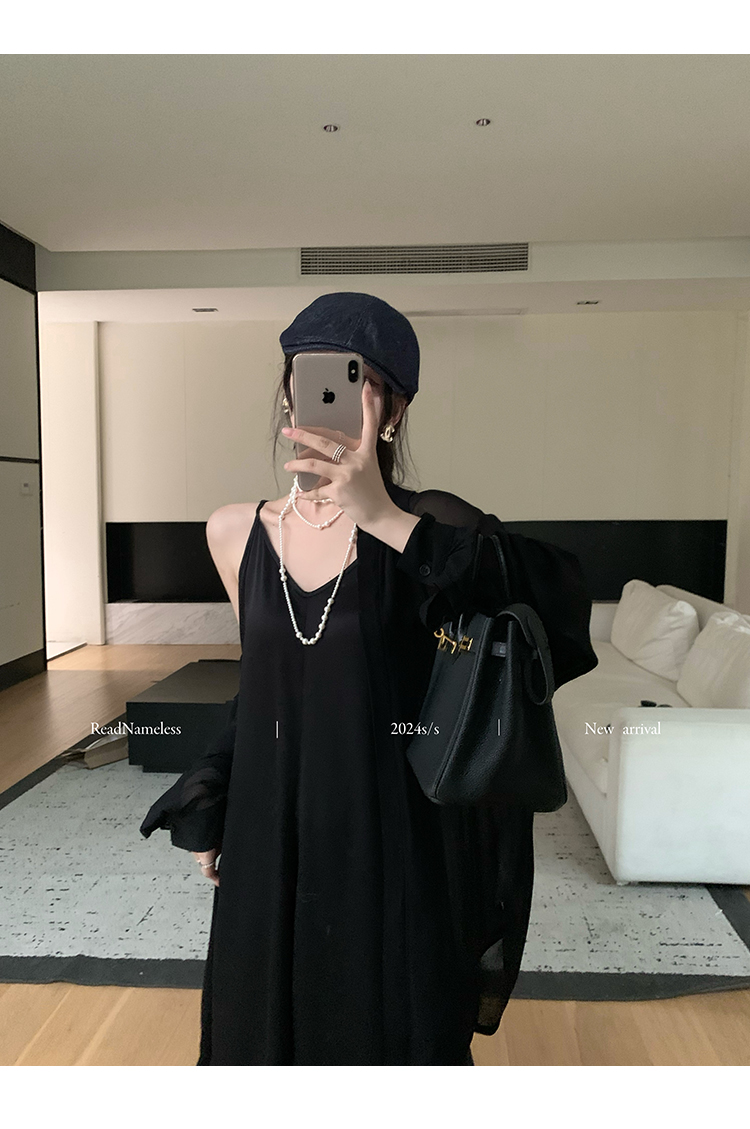 Read Nameless /迪拜贵妇黑色吊带裙+独家100%人丝黑色褶皱袖衬衫