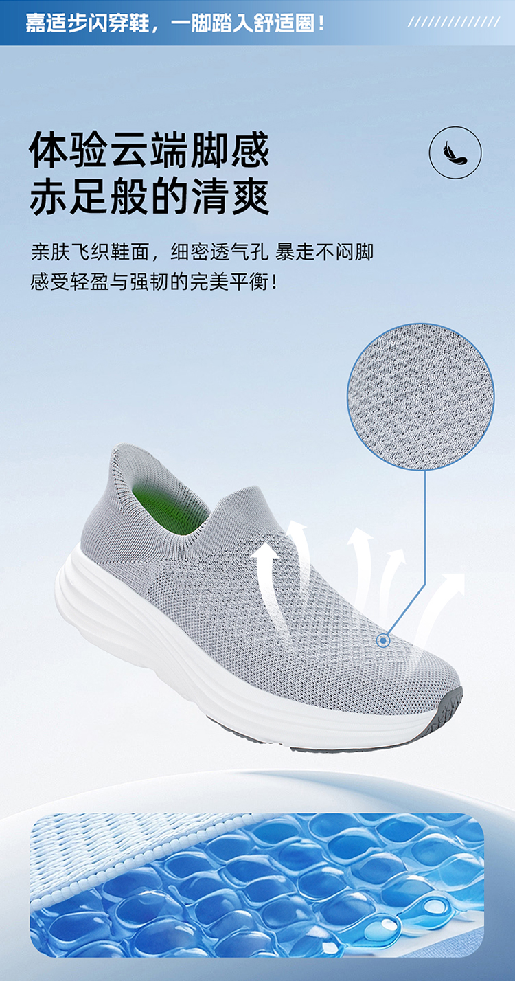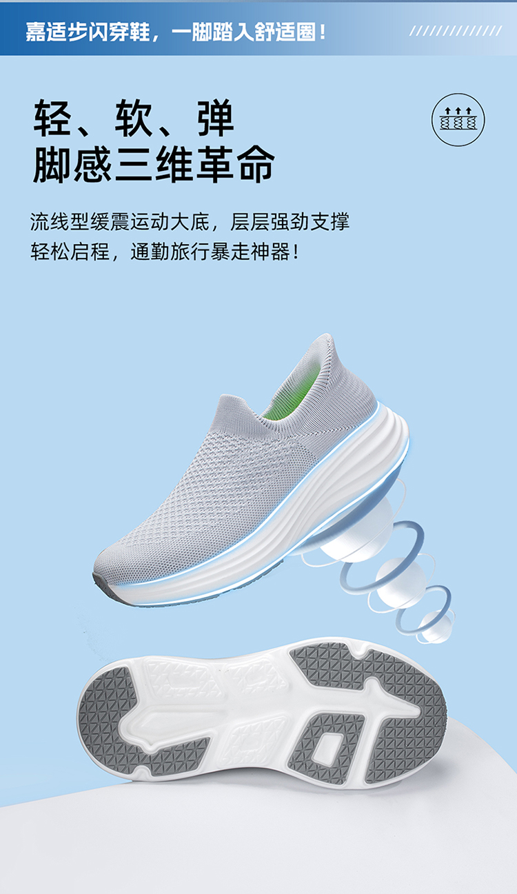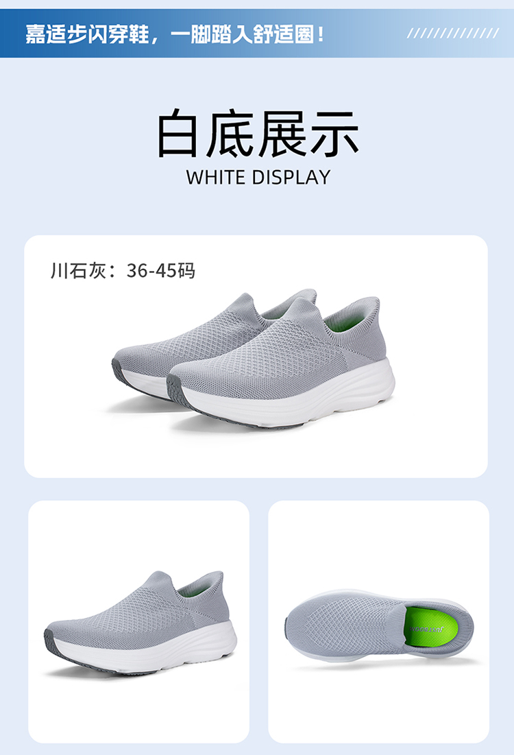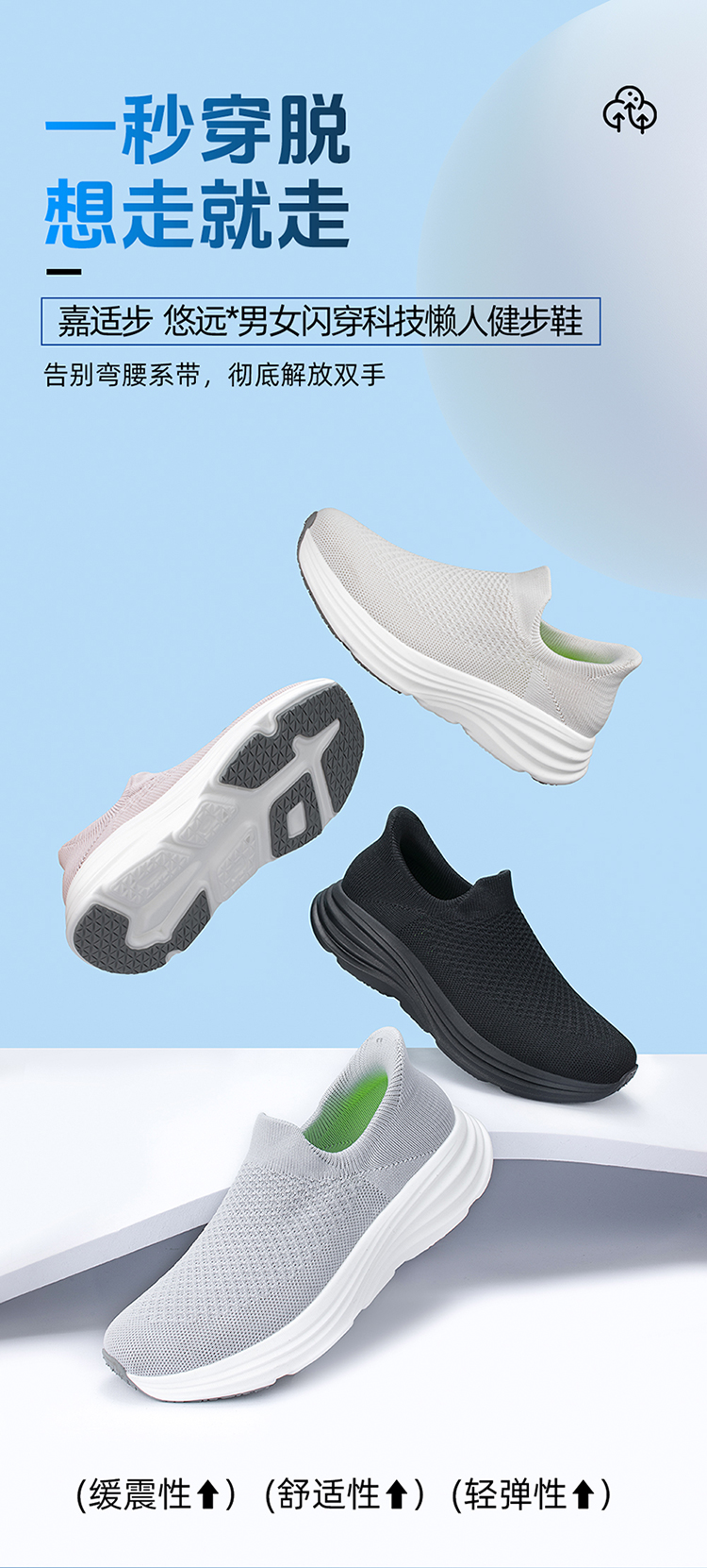 优选丨Justboom嘉适步 男女同款闪穿健步鞋,一脚蹬设计 告别弯腰系鞋带,彻底解放双手,一秒穿脱,体验云端脚感,飞织鞋面,细密透气孔,暴走不闷脚