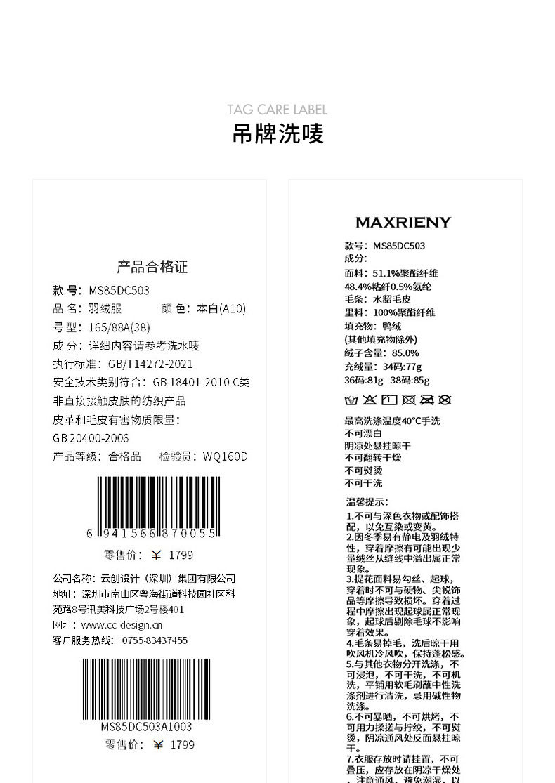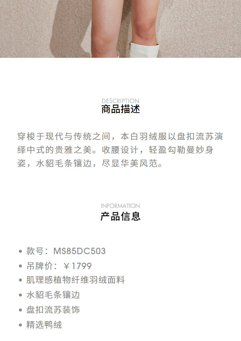 玛克门店发货:MAXRIENY水貂毛边收腰羽绒服(货号:MS85DC503)