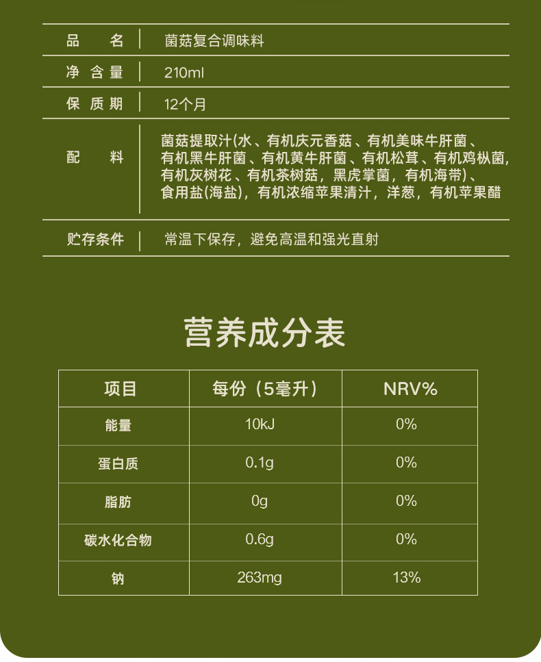 百山祖九菇鲜210g*1瓶