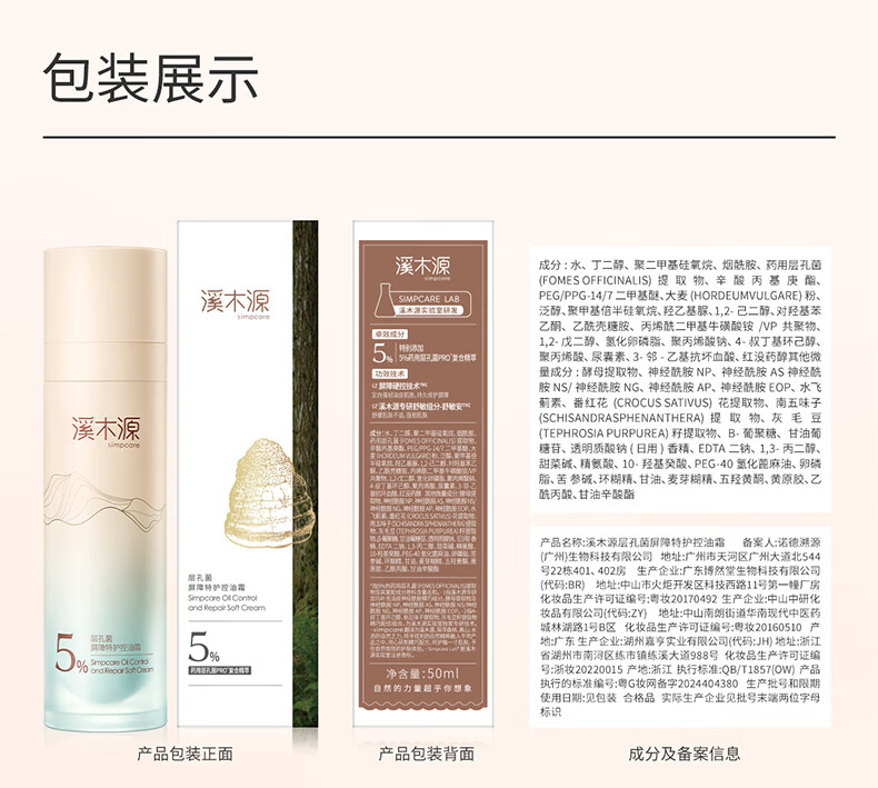 溪木源 层孔菌控油舒敏精华霜 50g XMY-225