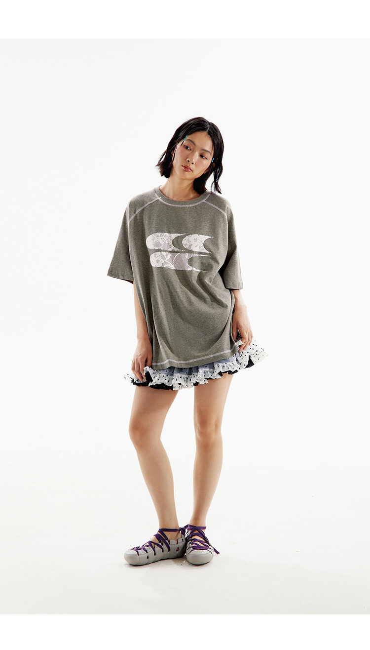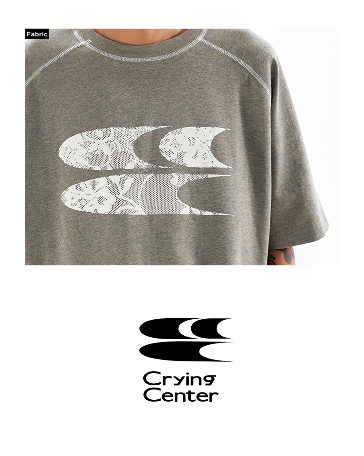 CryingCenter 海藻泥蕾丝3clogo灰调t恤圆领短袖 哭喊中心