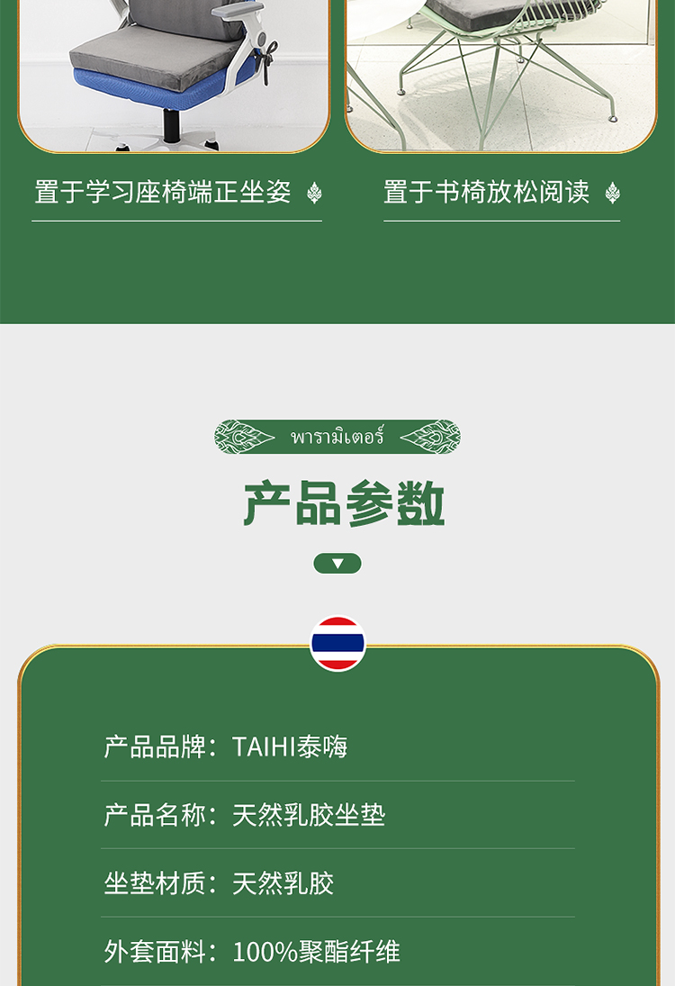 TAIHI泰嗨泰国进口天然乳胶坐垫高回弹力柔软Q弹椅垫