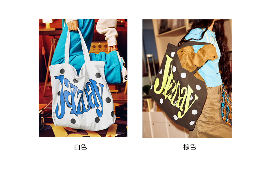 CryingCenterJazzyDay波点撞色字母托特单肩帆布包大容量哭喊中心