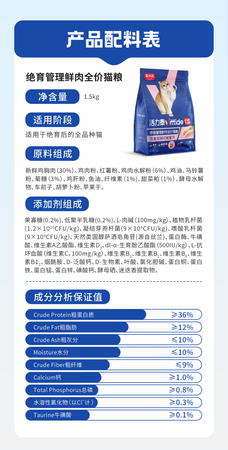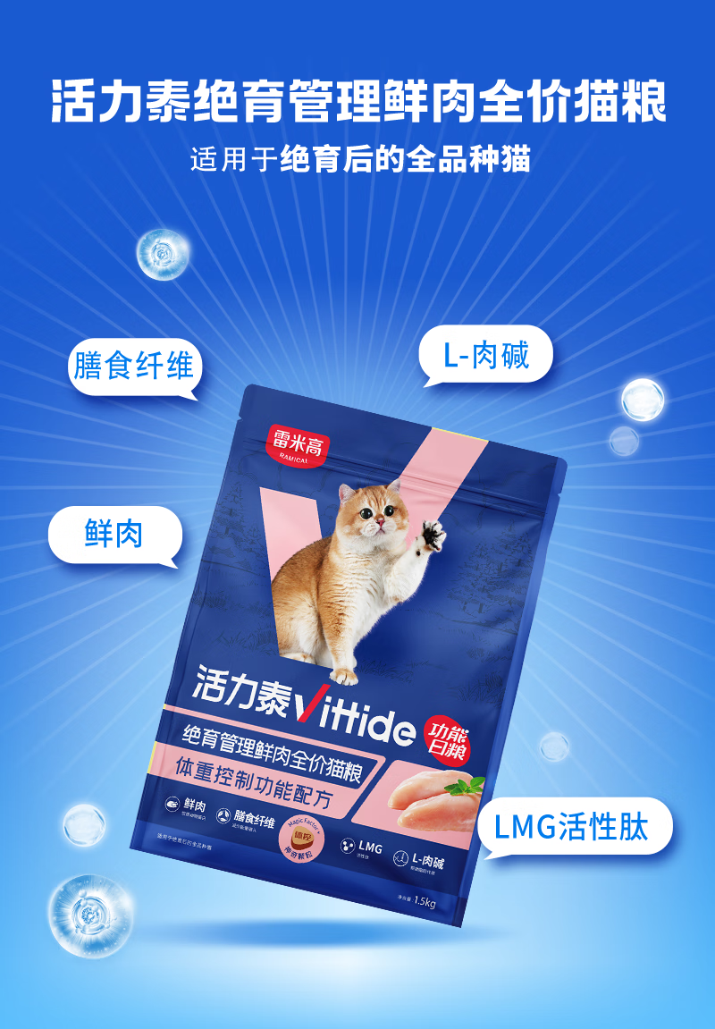 【雷米高】活力泰鲜肉系列功能日粮绝育管理全价猫粮1.5kg 活力泰绝育期鲜肉全价猫粮1.5kg