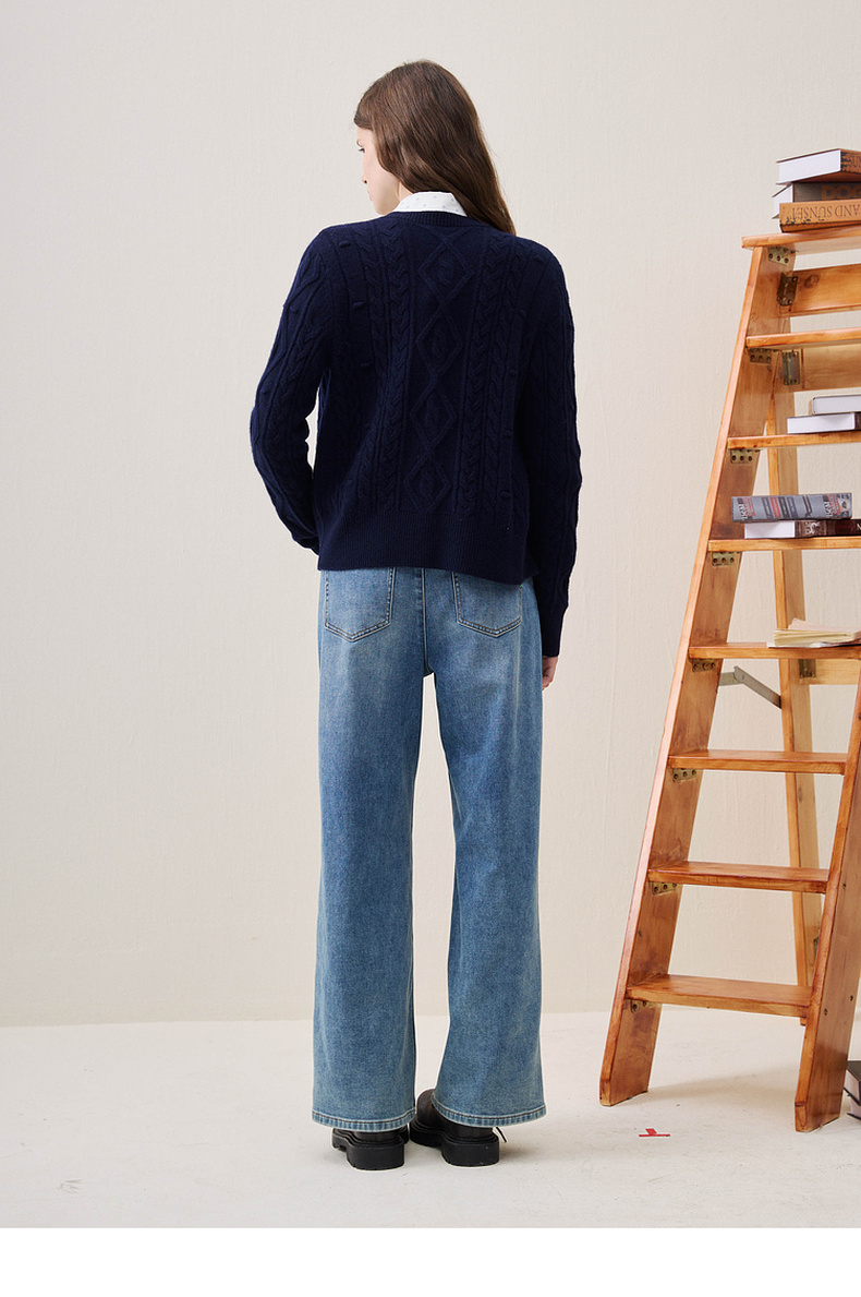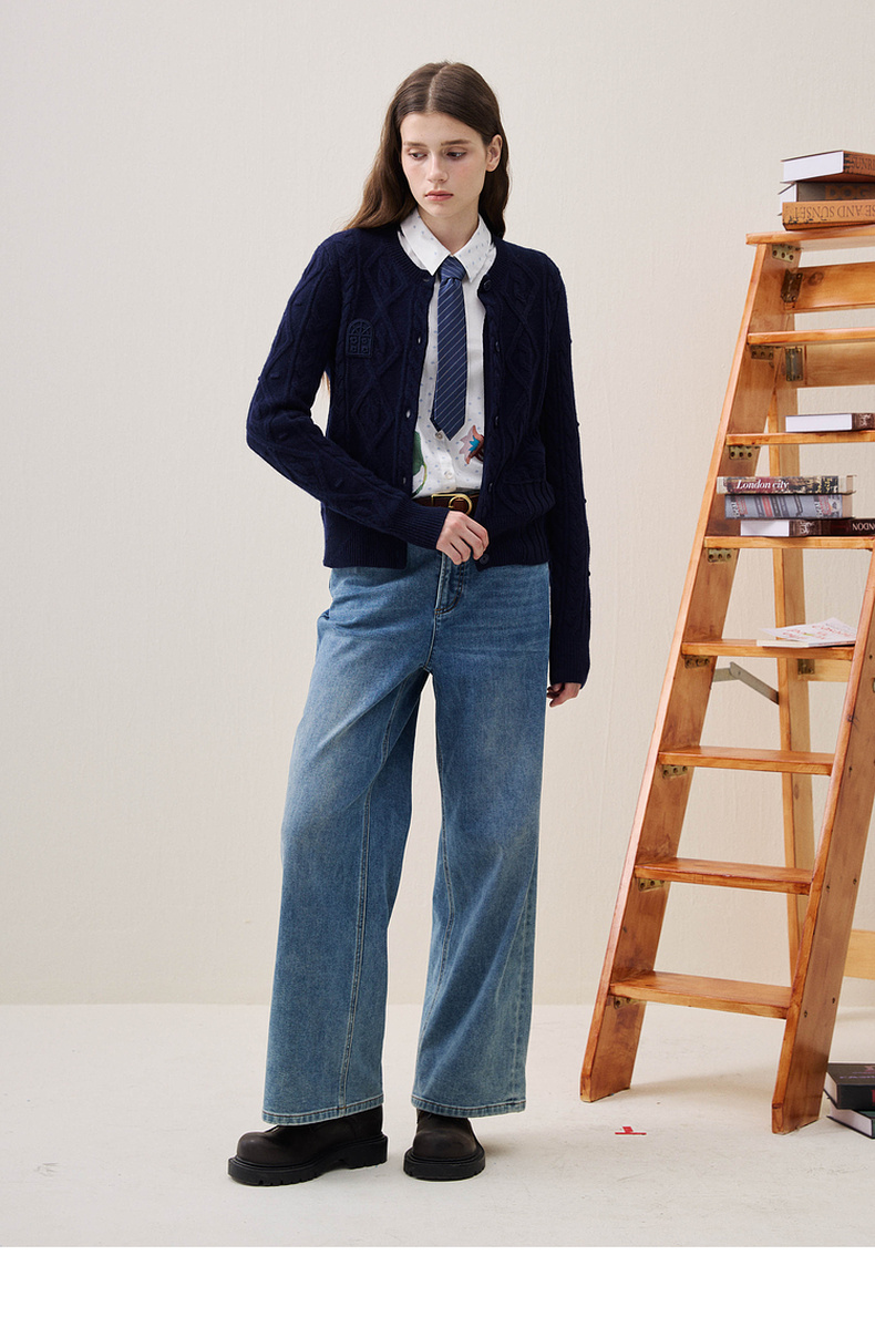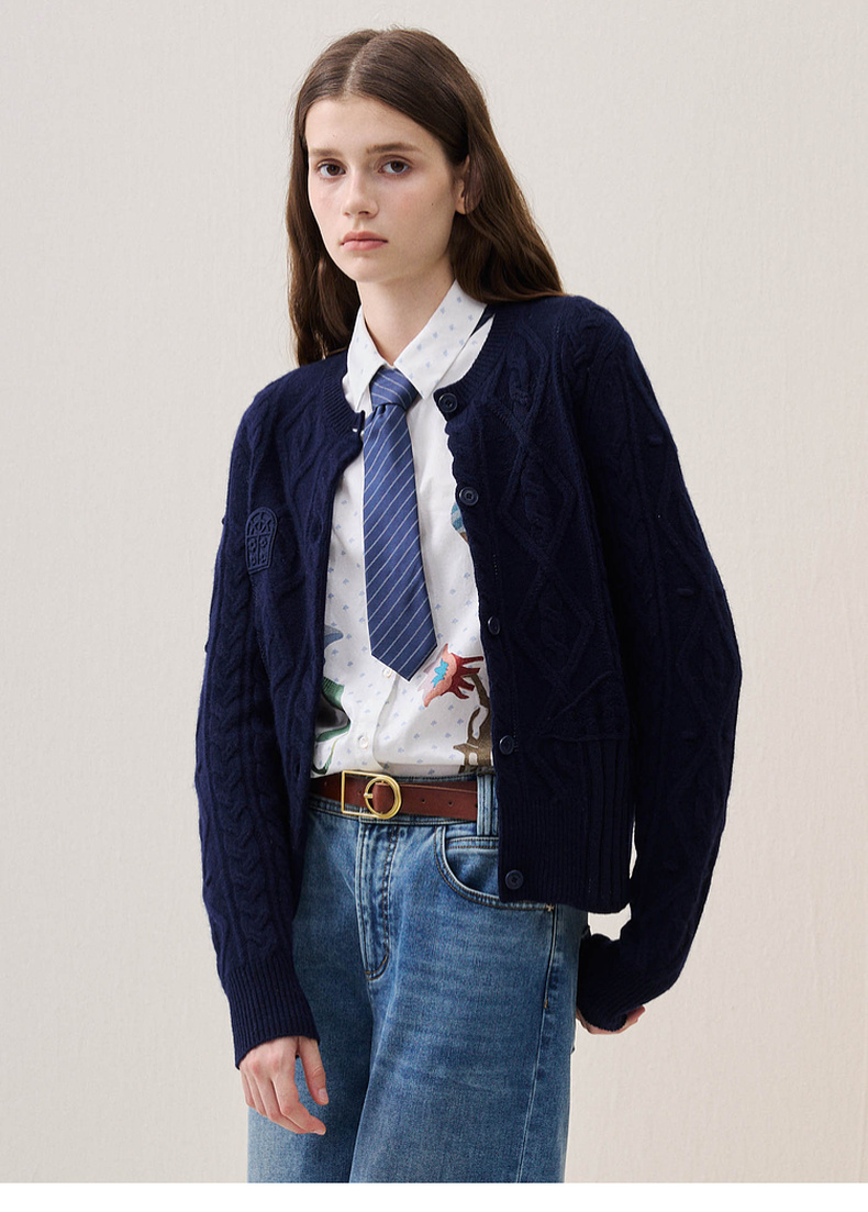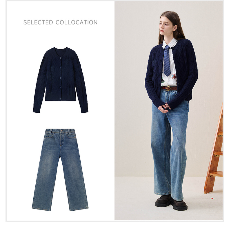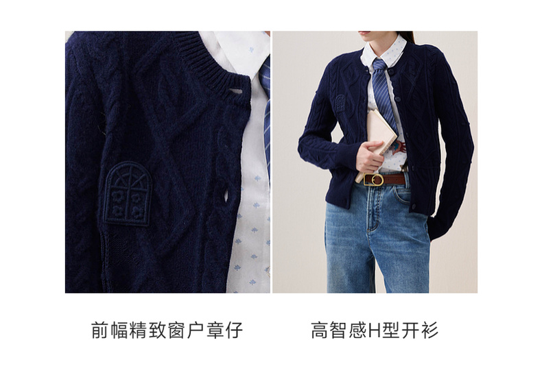 谜底针织开衫长袖2025年冬季新品H型羊毛衫提花毛衣女254MZ1862
