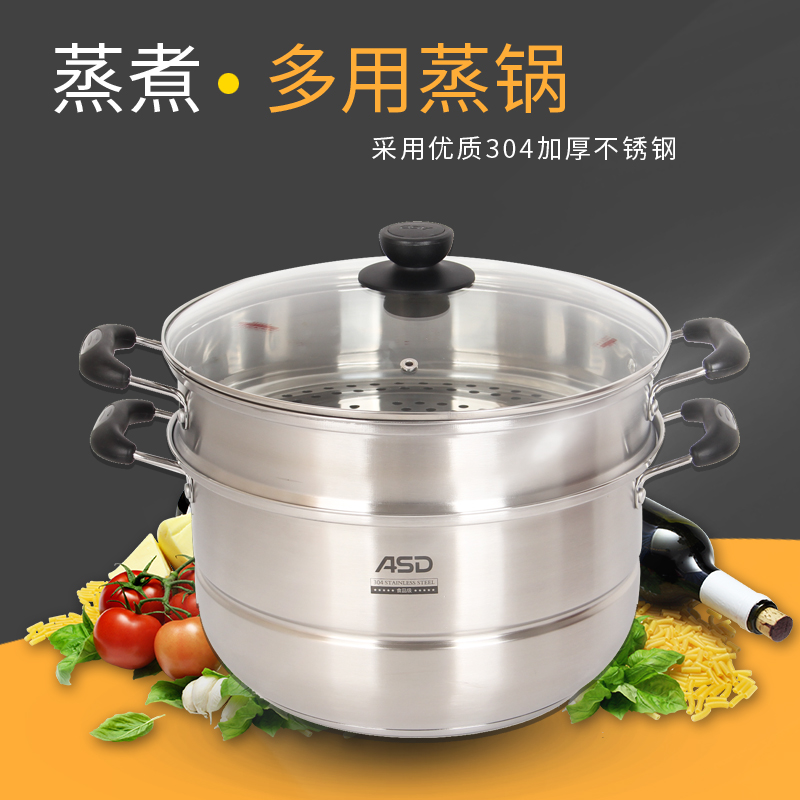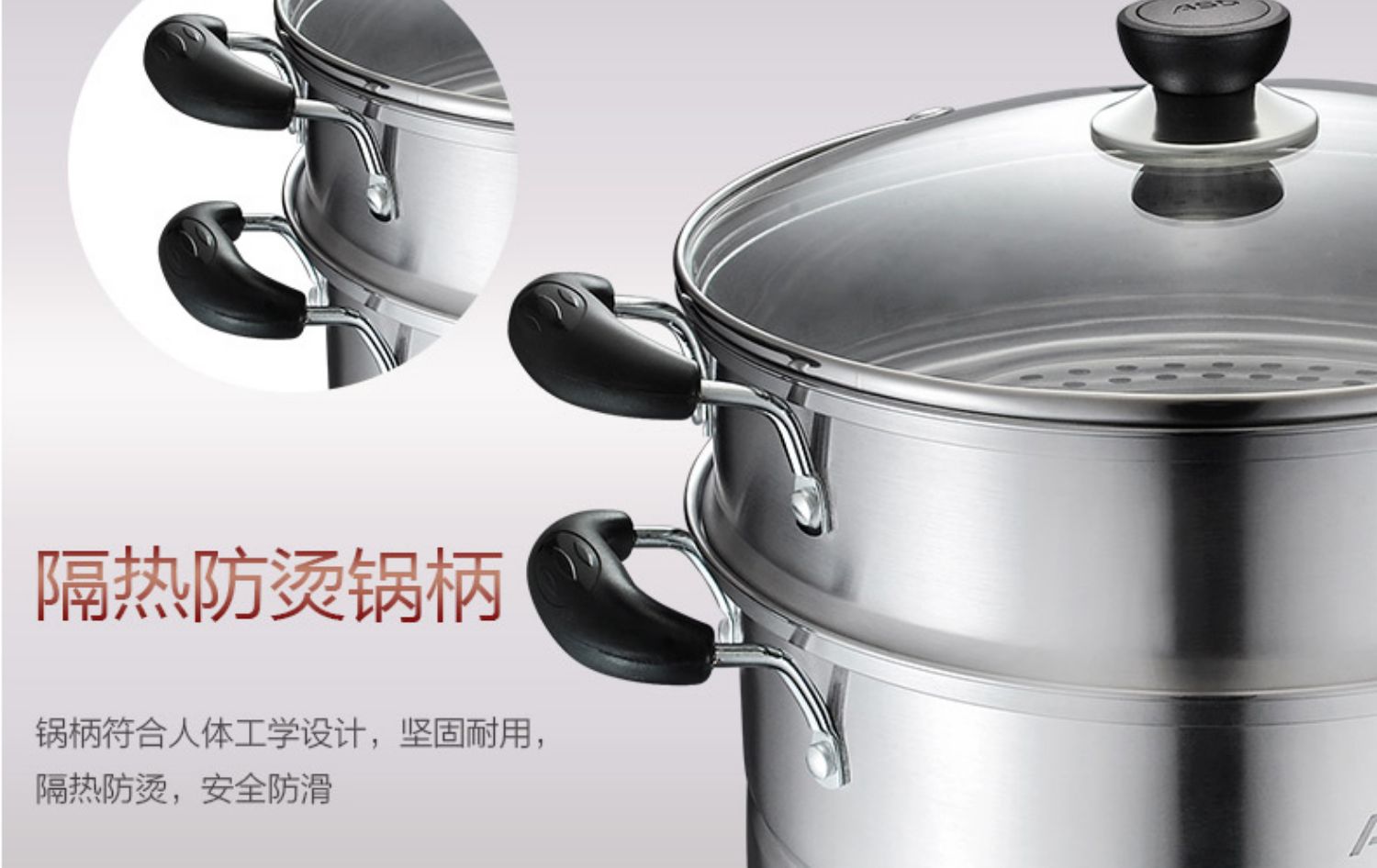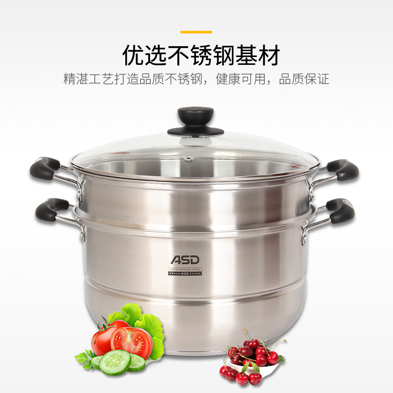 爱仕达不锈钢燃气灶电磁炉通用蒸馒头大二层蒸煮家用蒸锅ZS28C1Q