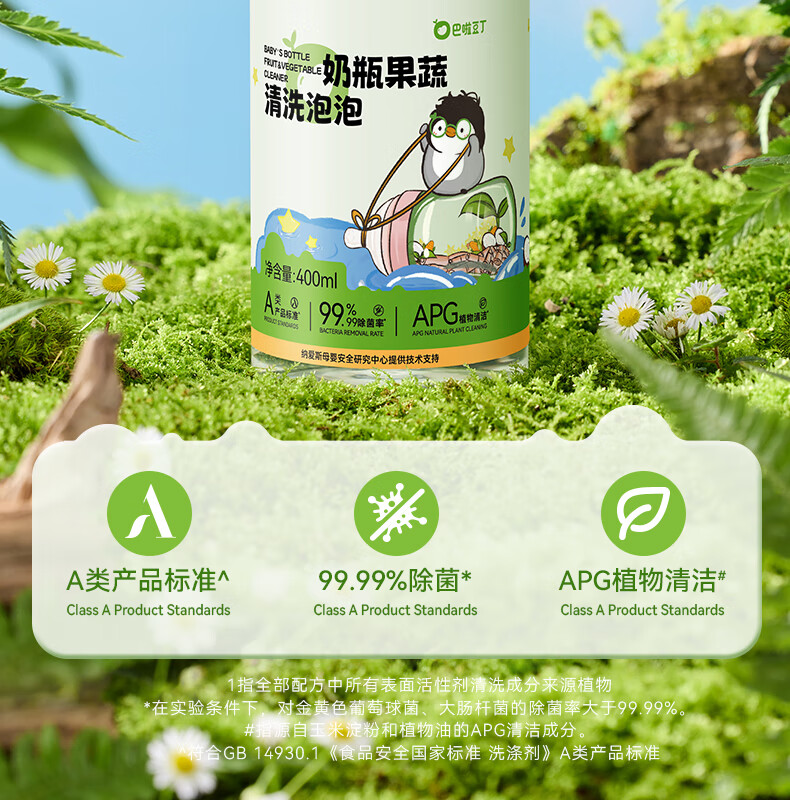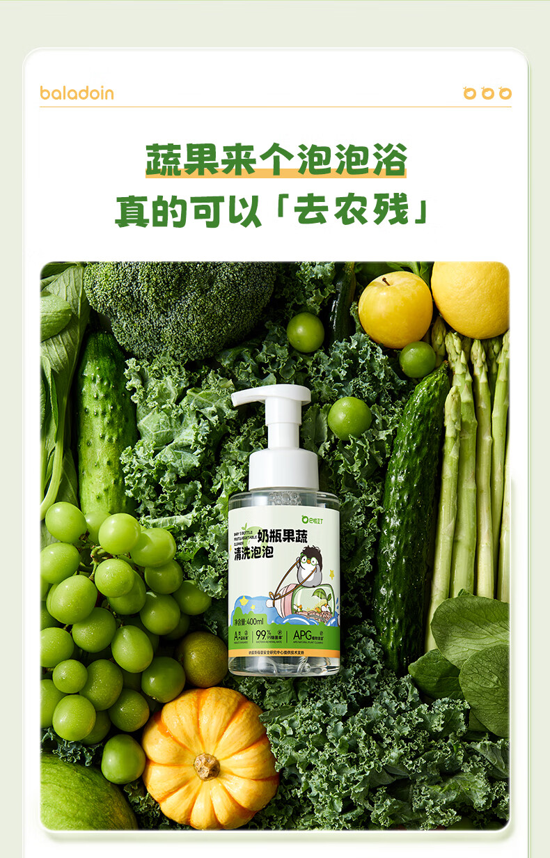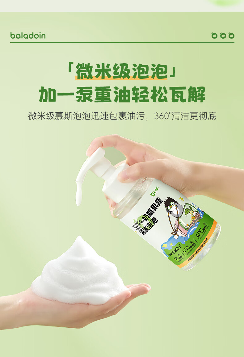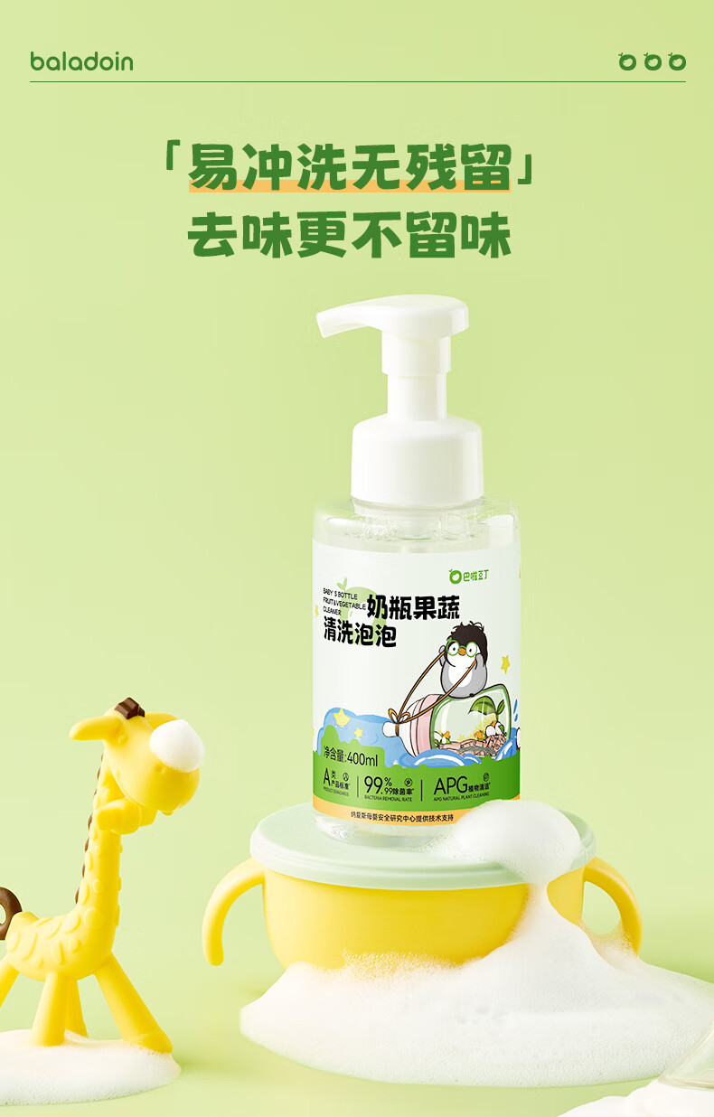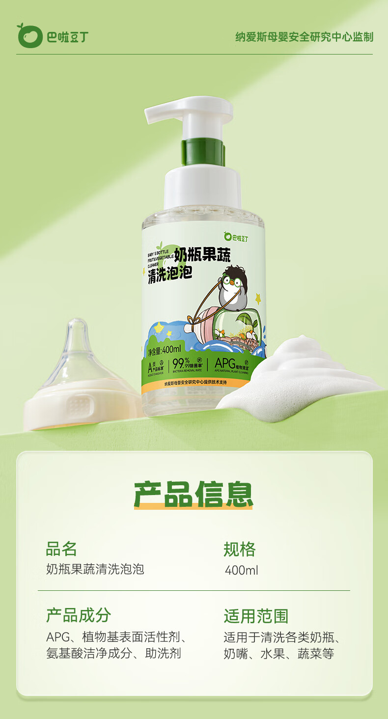 巴啦豆丁 奶瓶清洗剂 奶瓶果蔬清洗泡泡400ml/瓶
