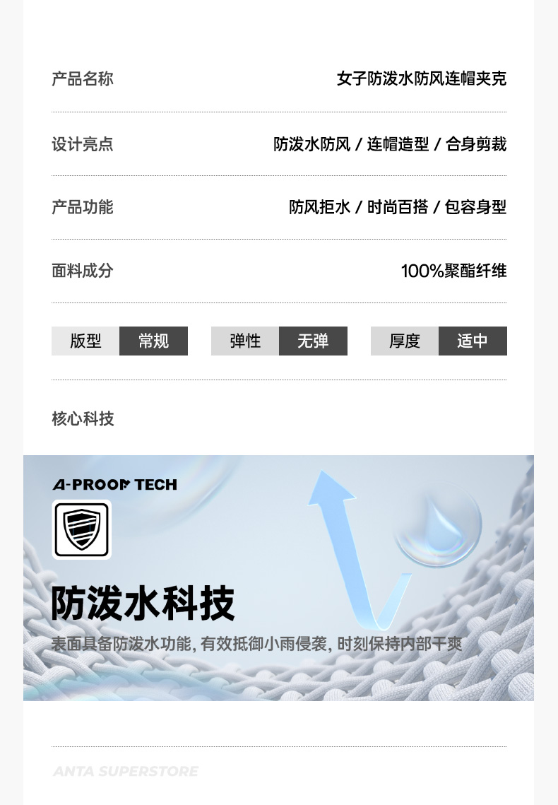 超级安踏防泼水运动外套女士秋季薄款连帽防风夹克外套上衣女162537603U